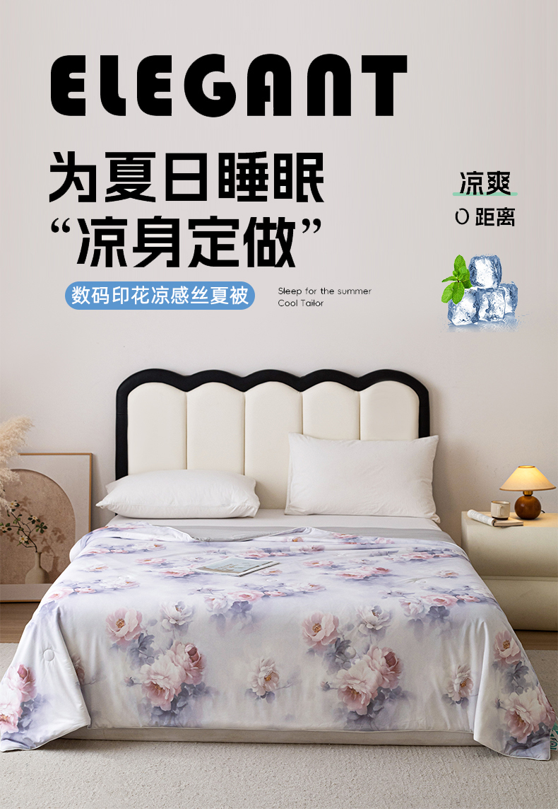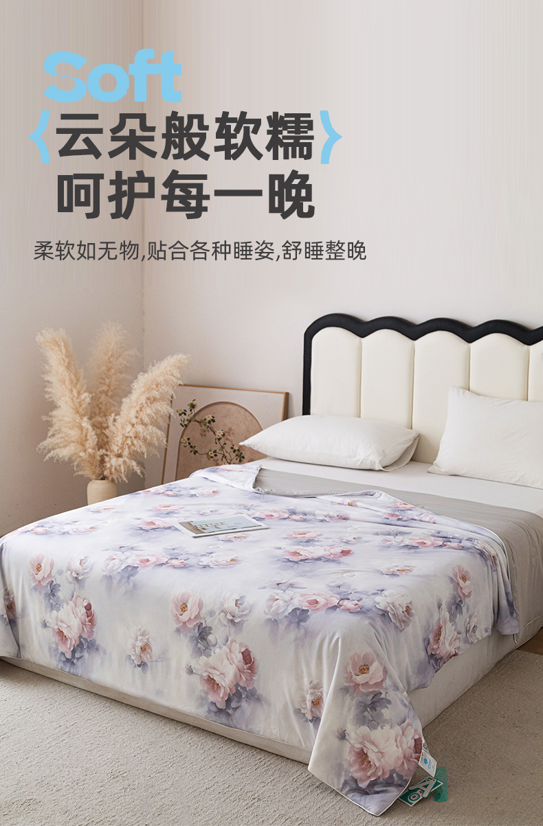 亿莱鑫 2026新款数码印花凉感丝夏被 花陌语
