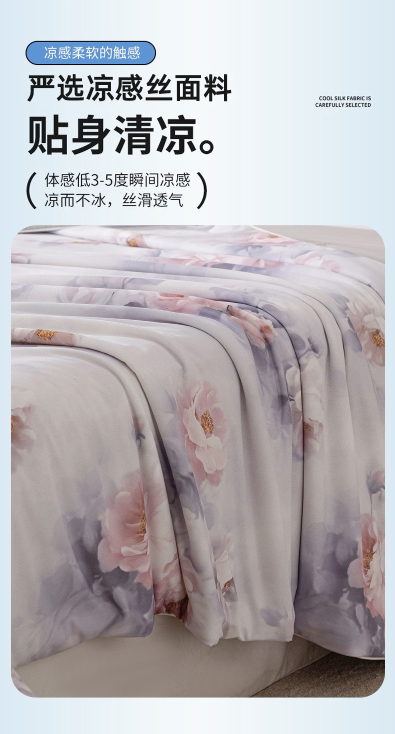 商品名称:亿莱鑫 2026新款数码印花凉感丝夏被 花陌语