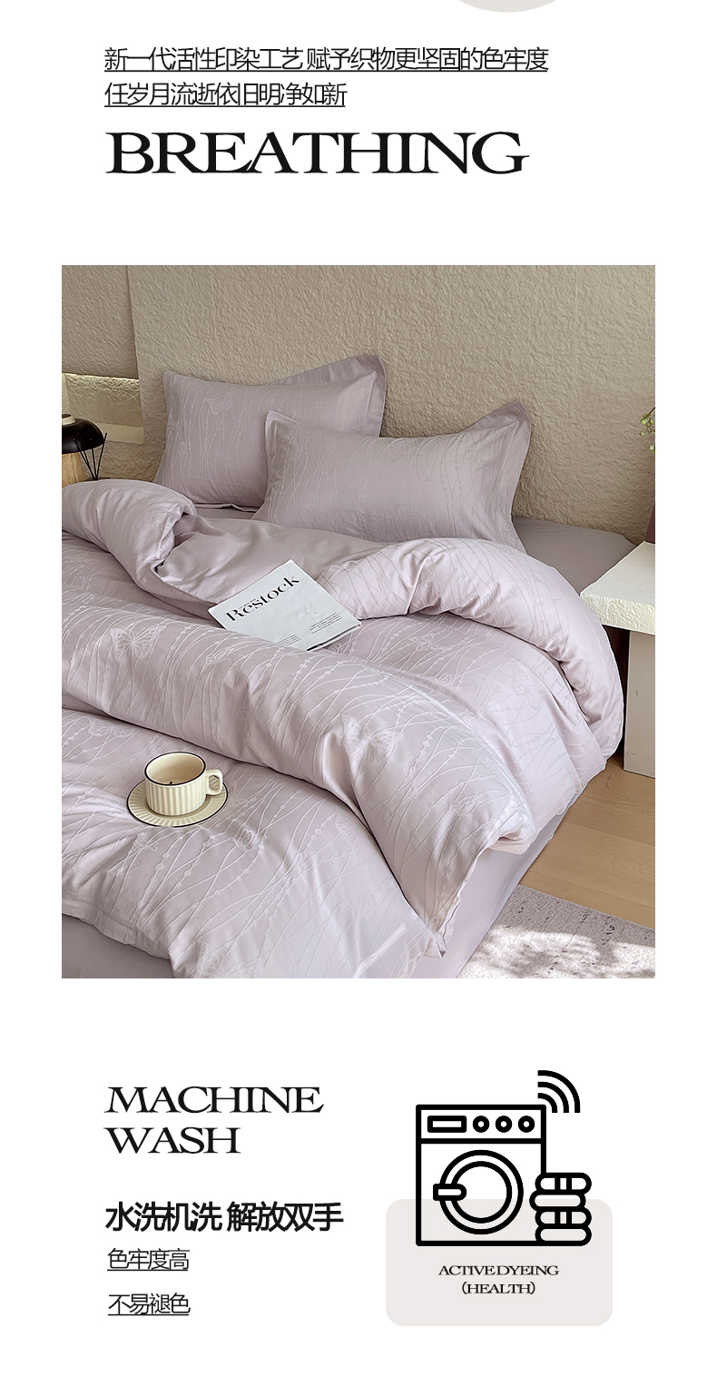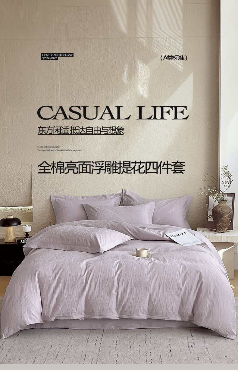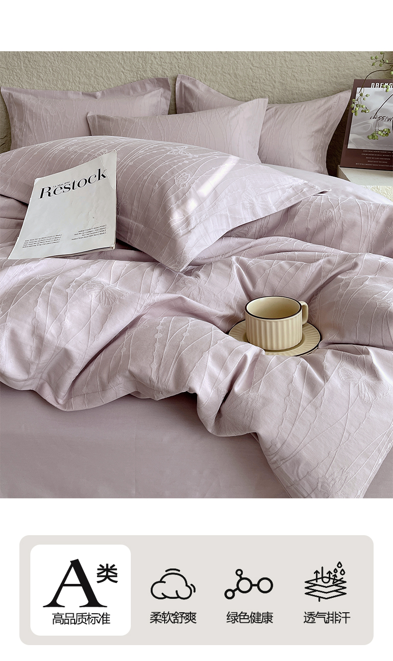 宜家坊 2026新款A类全棉纯棉亮面浮雕提花四件套 蝶梦-淡雅紫