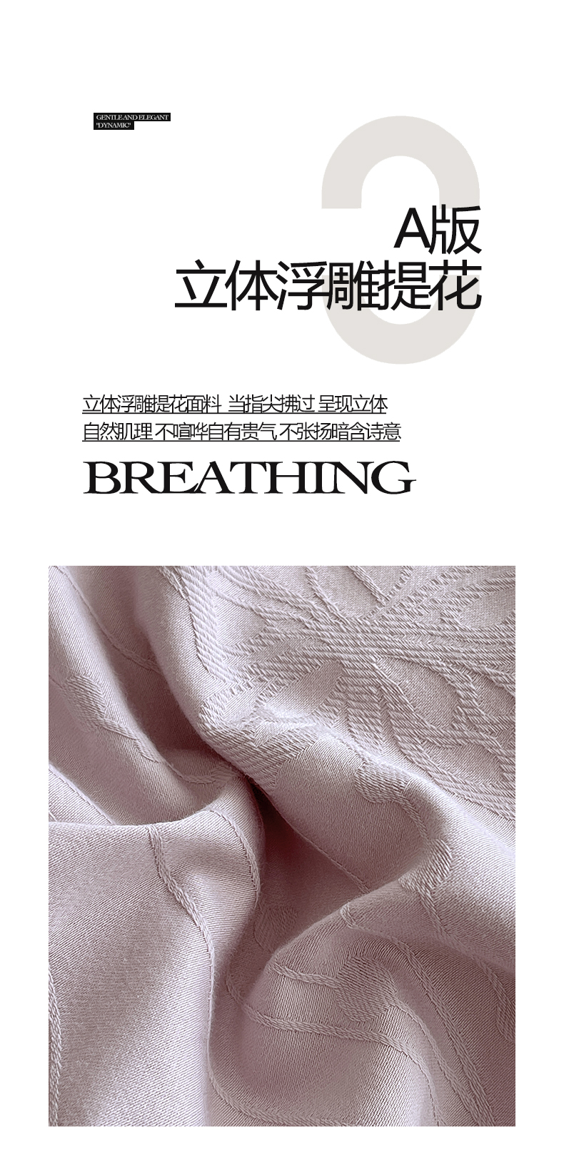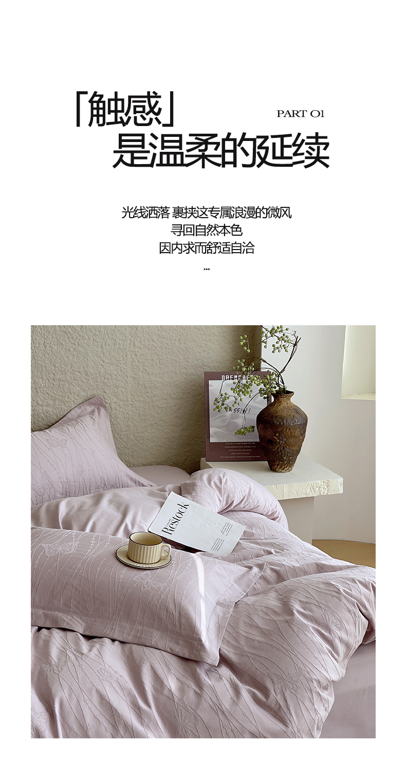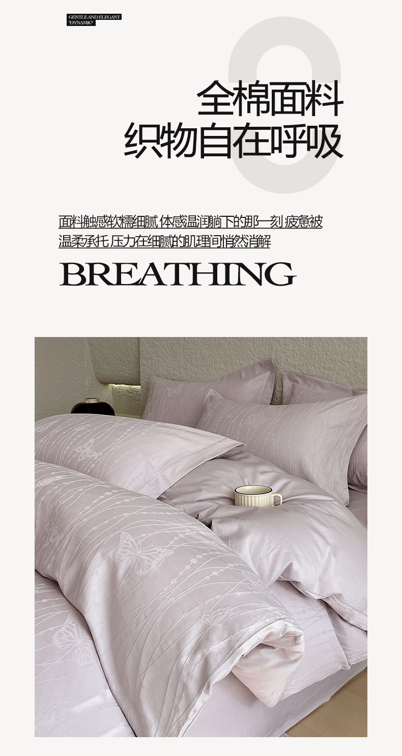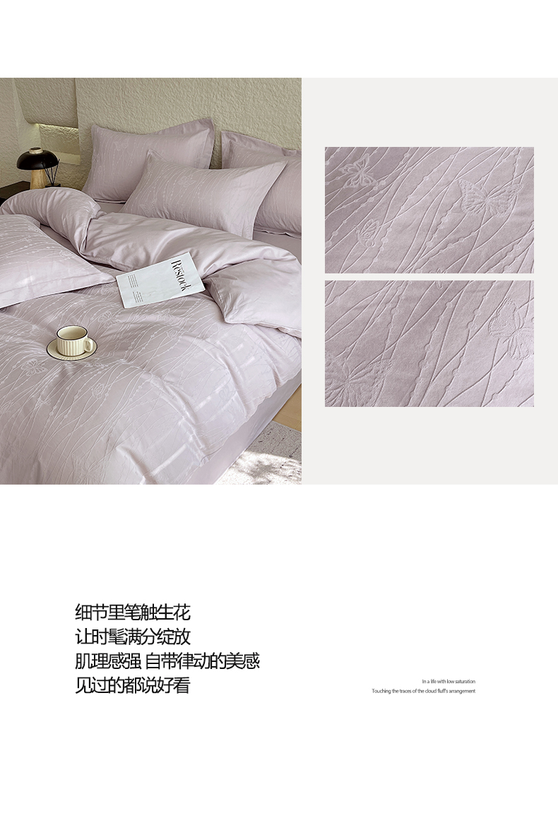 商品名称:宜家坊 2026新款A类全棉纯棉亮面浮雕提花四件套 蝶梦-淡雅紫