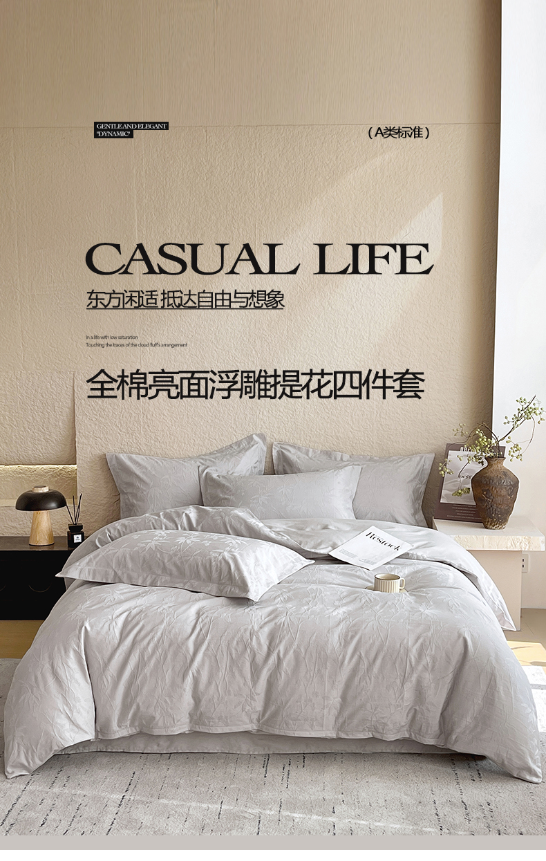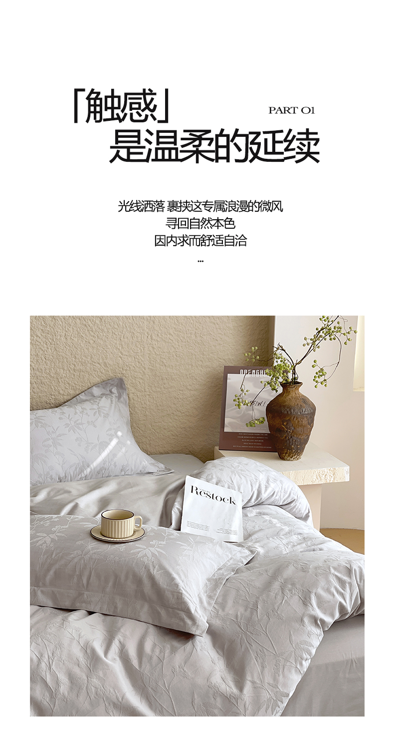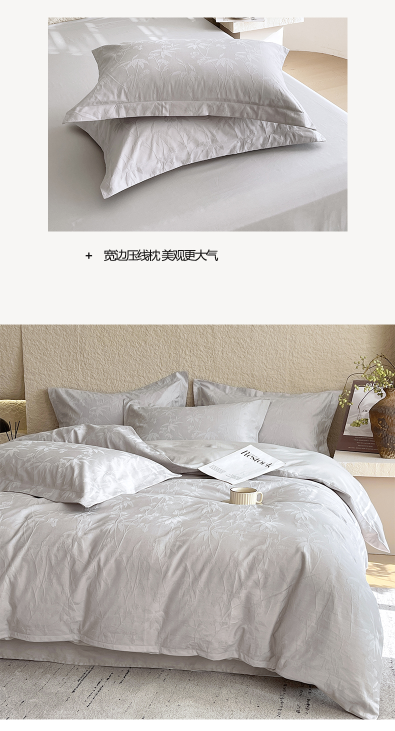 商品名称:宜家坊 2026新款A类全棉纯棉亮面浮雕提花四件套 森语集-银灰