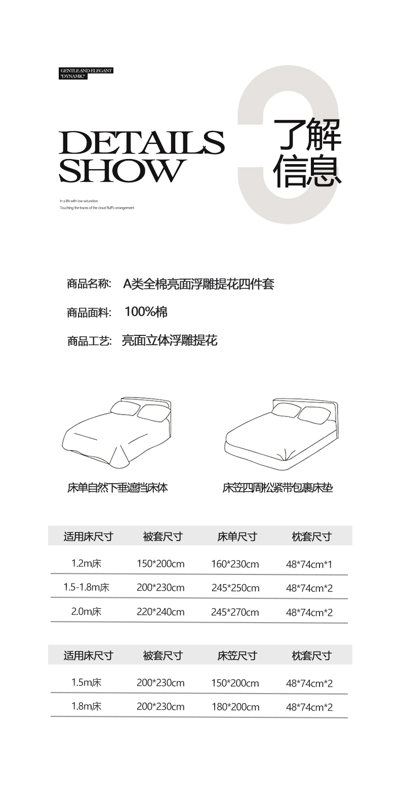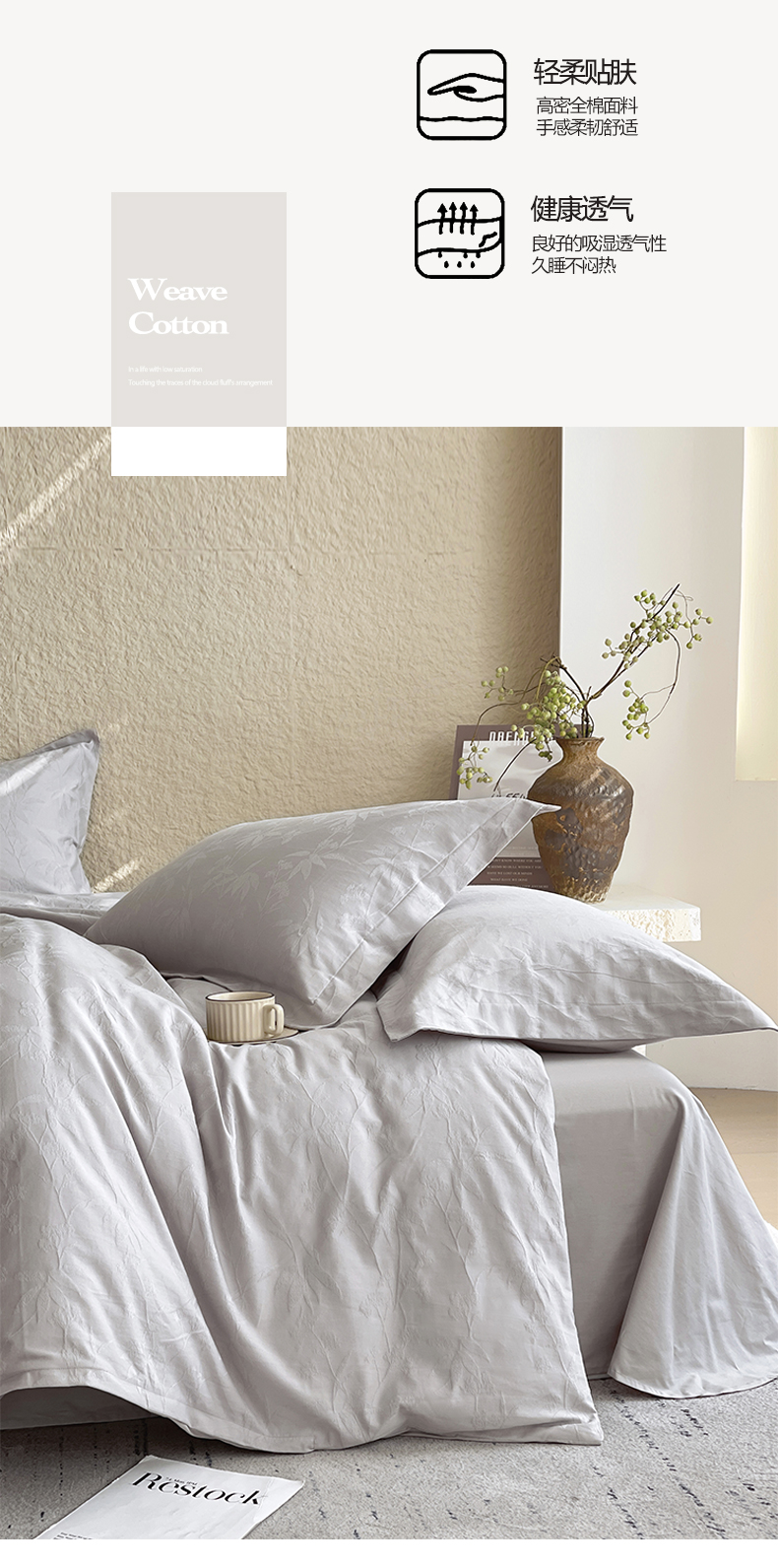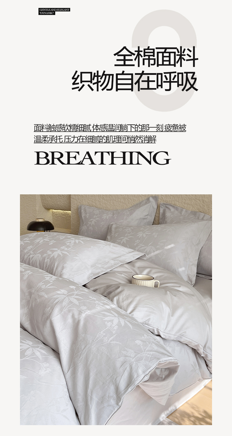 商品名称:宜家坊 2026新款A类全棉纯棉亮面浮雕提花四件套 森语集-银灰
