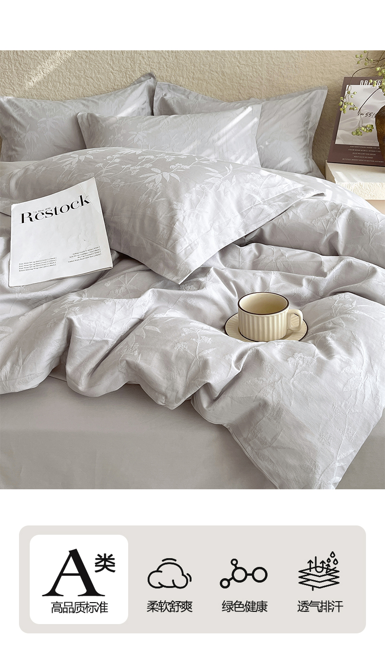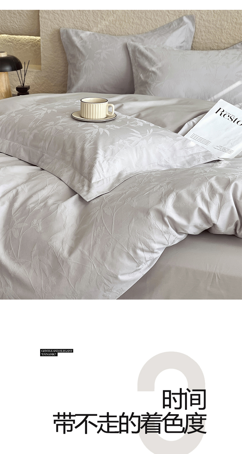 宜家坊 2026新款A类全棉纯棉亮面浮雕提花四件套 森语集-银灰