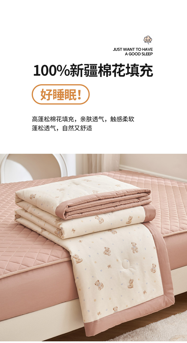 • 91家纺网 家纺一手货源 找家纺 吾秀家居 吾诺 2026新款 12868全棉印花棉花夏被四件套 全棉夏被四件套新疆棉花被 - 经典系列 奶棕小熊