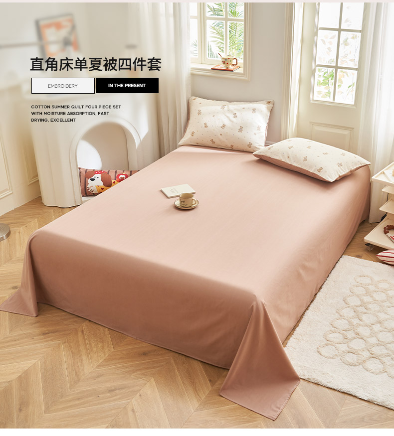 吾秀家居 吾诺 2026新款 12868全棉印花棉花夏被四件套 全棉夏被四件套新疆棉花被 - 经典系列 奶棕小熊