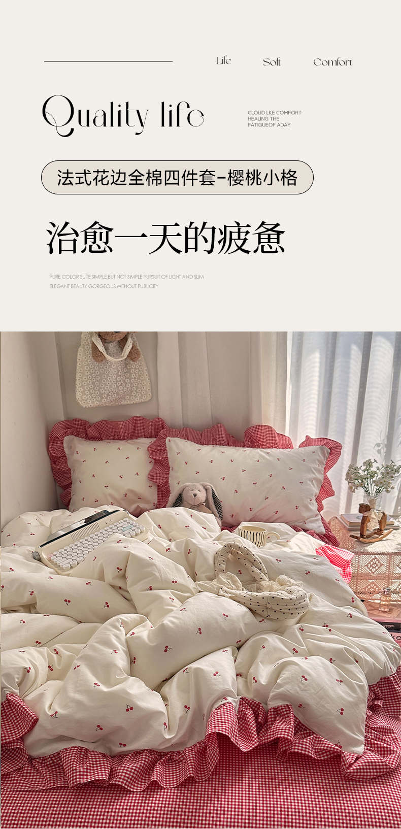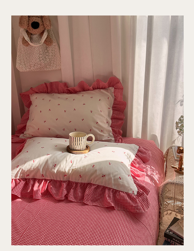 当前位置: 91家纺网 > 商品网购 > 床品套件 > 四件套 > 全棉普通四件套 > 艾咪-Amy ntmy 2026新款法式花边全棉四件套-樱桃小格 花边款-樱桃小红格