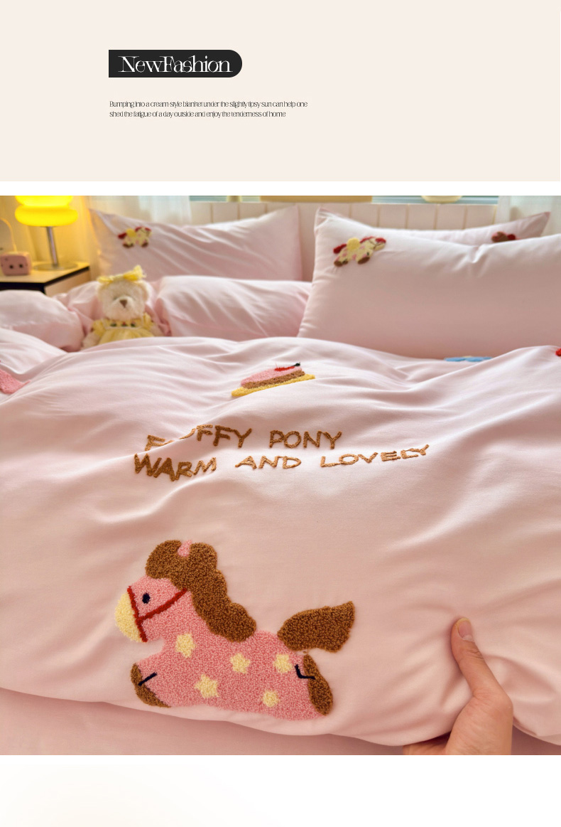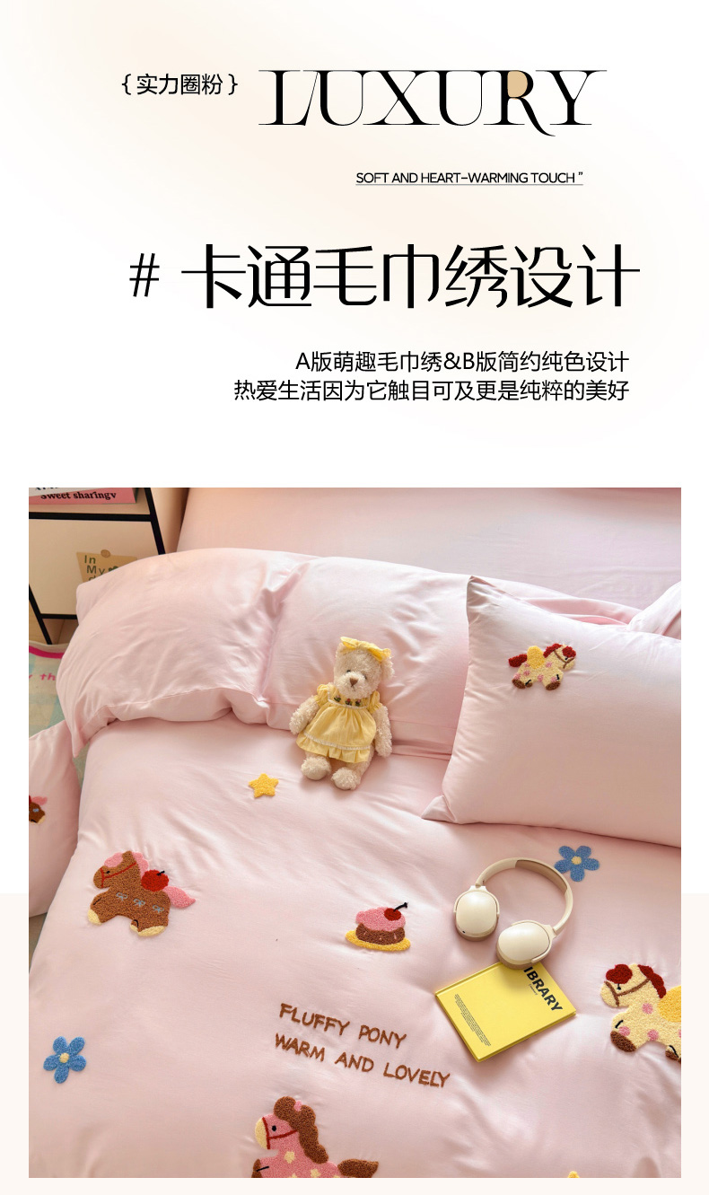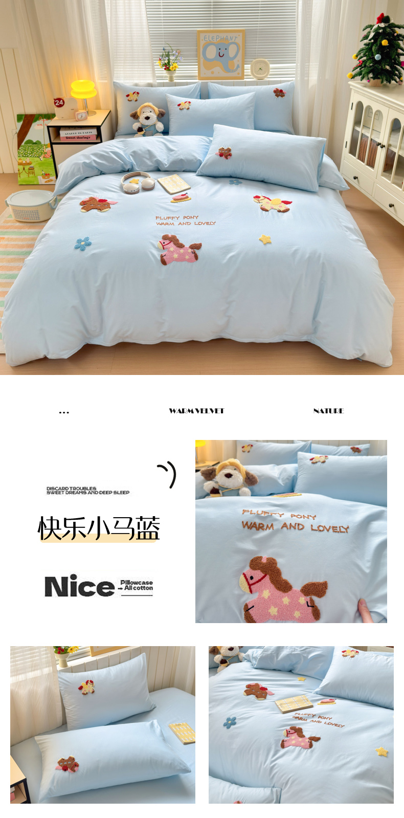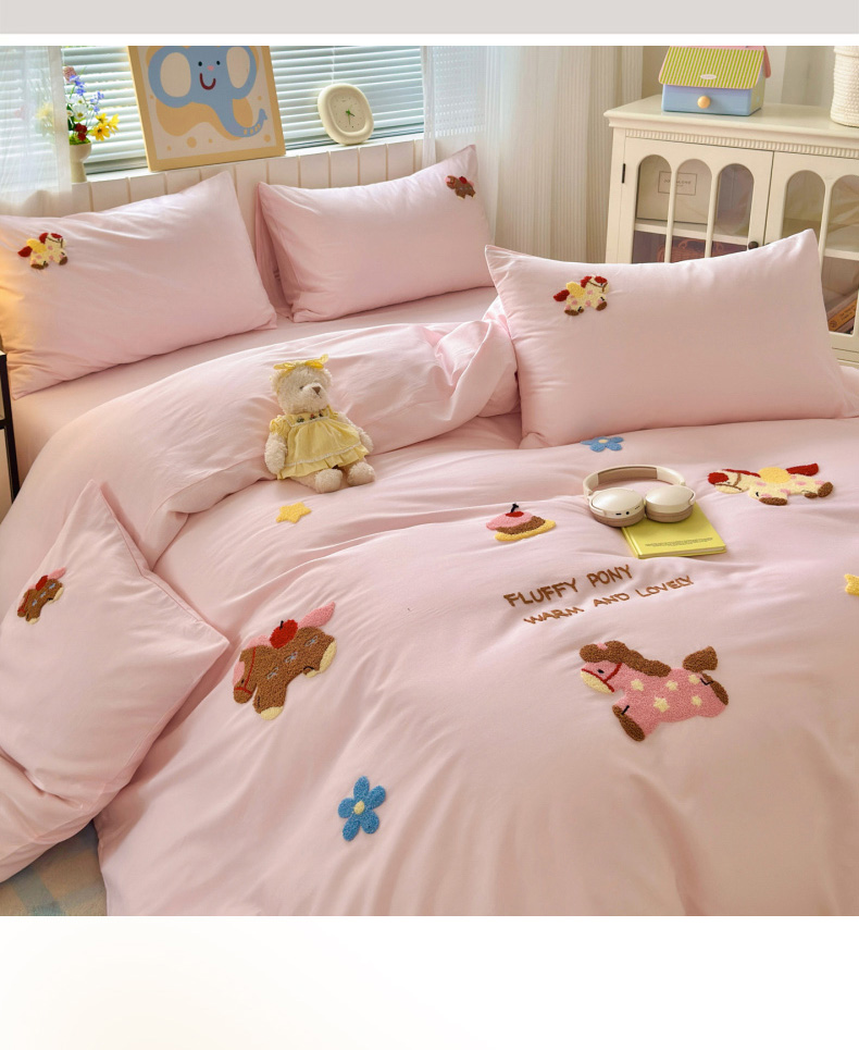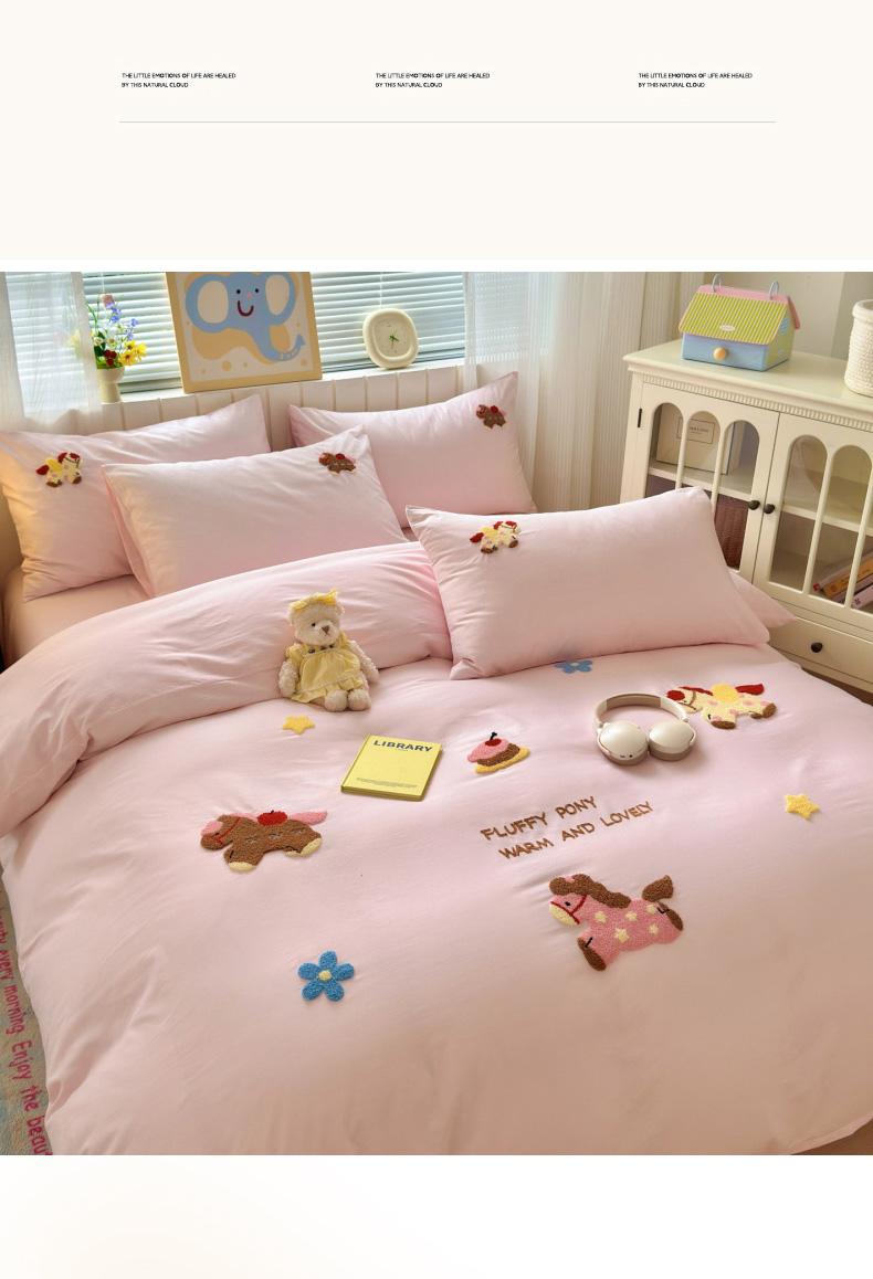如意朵 2026新款全棉小清新绣花四件套第一批 快乐小马粉