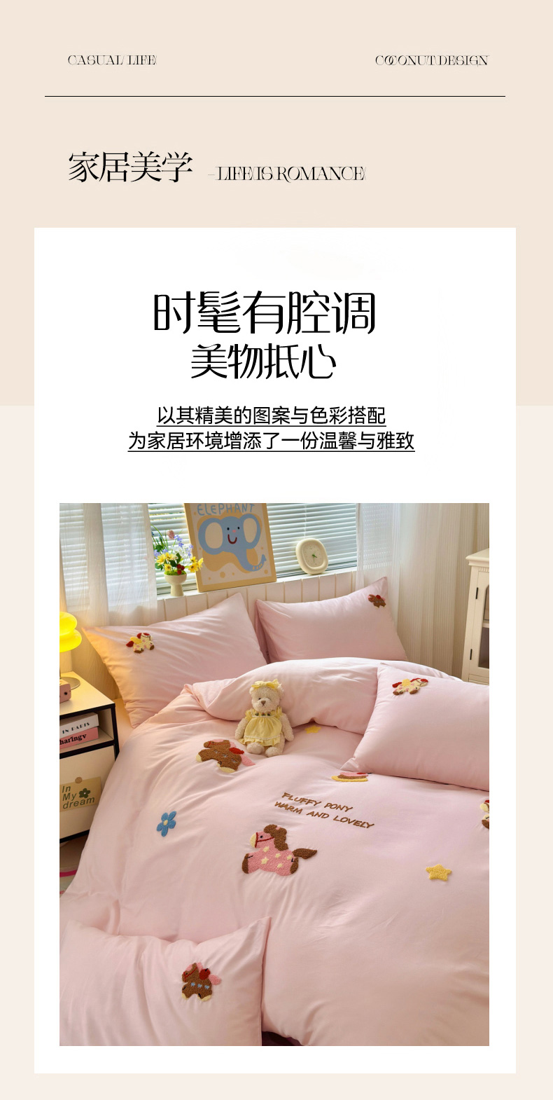 商品名称:如意朵 2026新款全棉小清新绣花四件套第一批 快乐小马粉