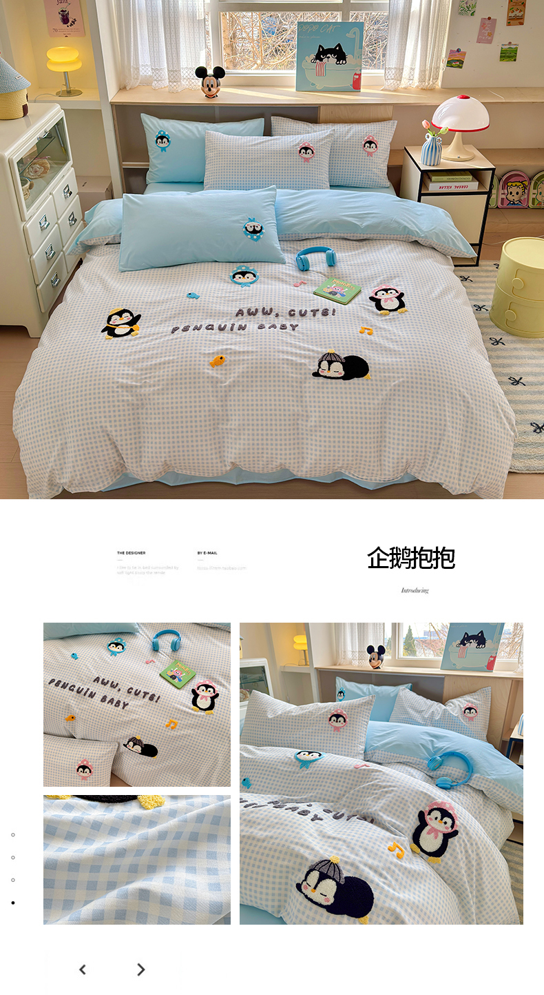 (总)如意朵 2026新款全棉纯棉提花水洗棉绣花四件套(专版花型),开心丫,三只小狗,三只小猫,贪吃卡皮,休闲小猫,抓星熊