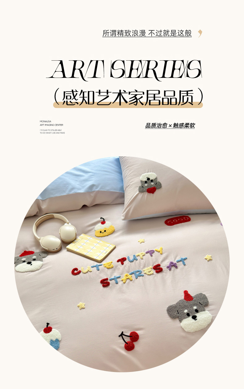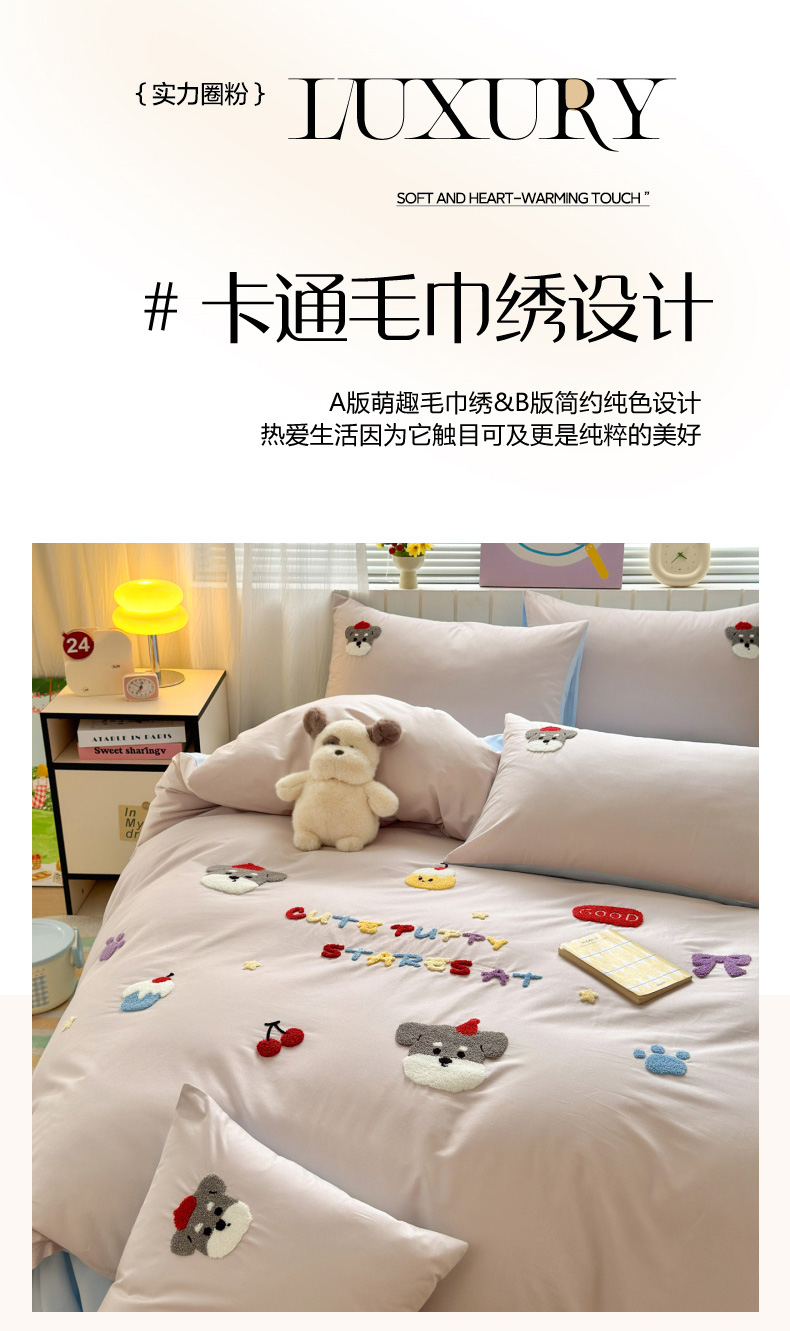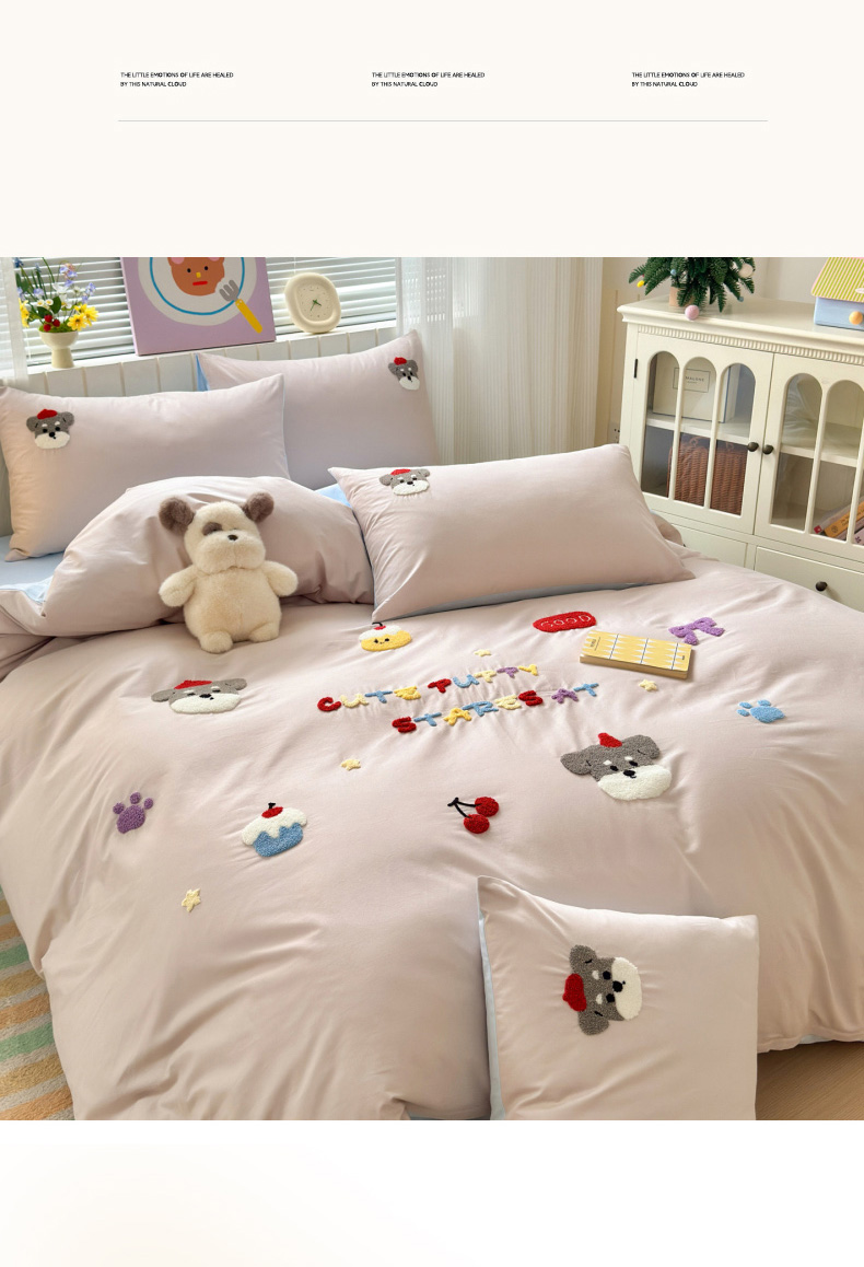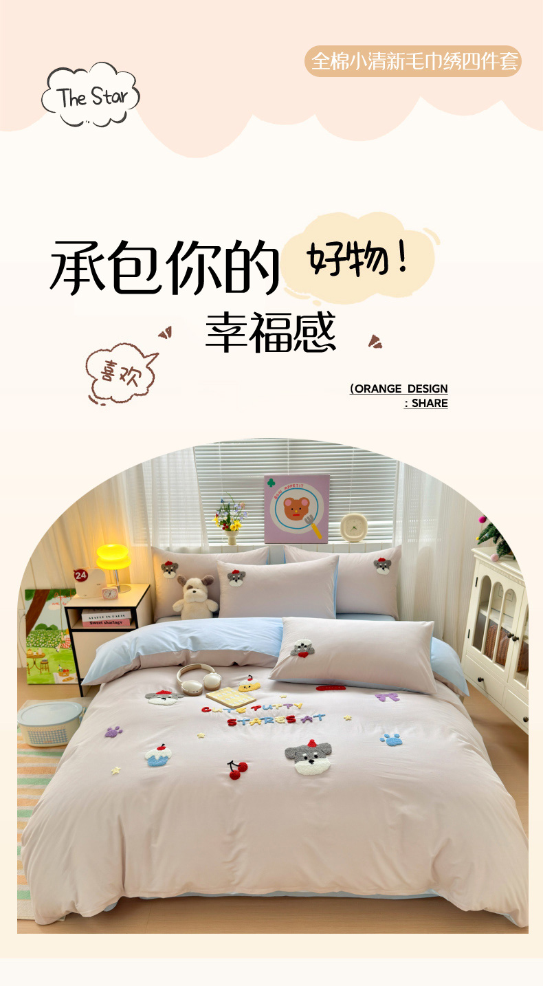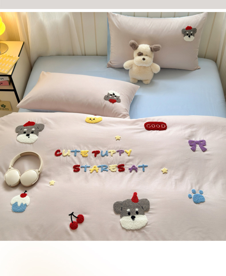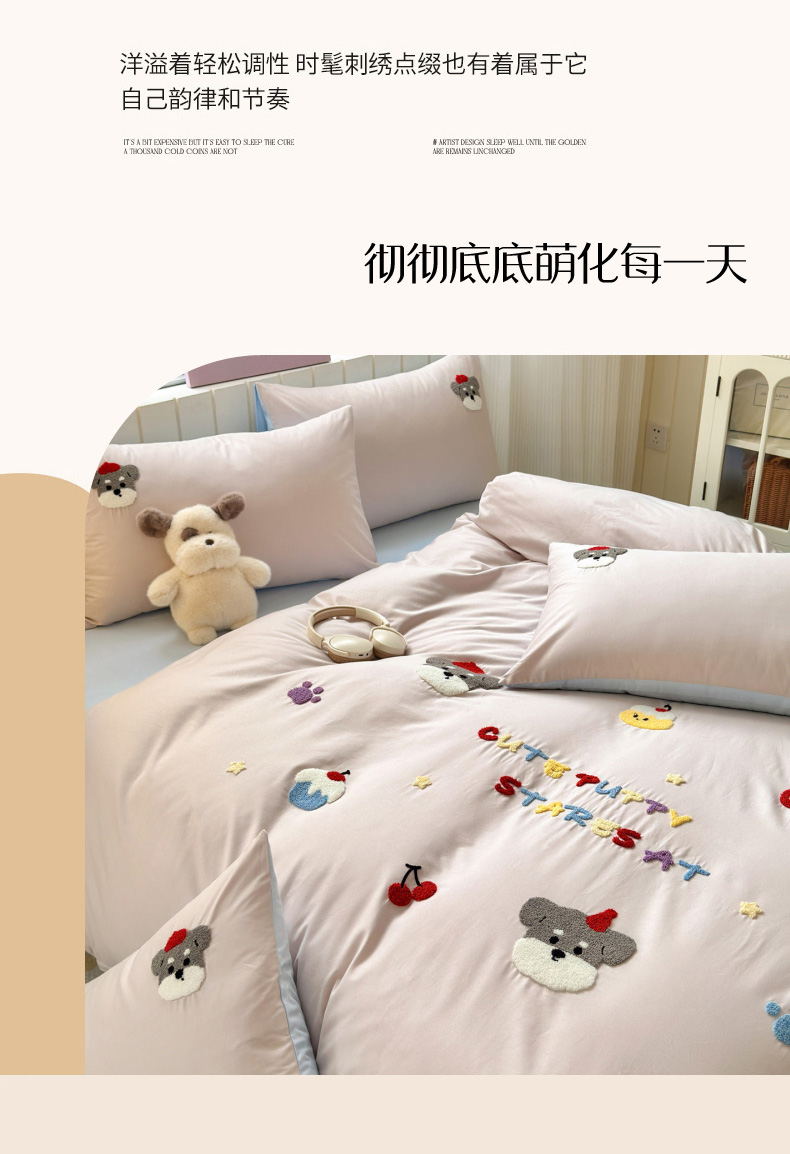 如意朵 2026新款全棉小清新绣花四件套第一批 软萌小狗