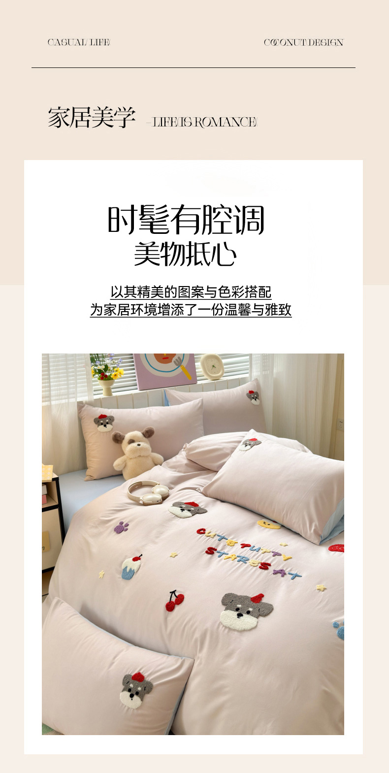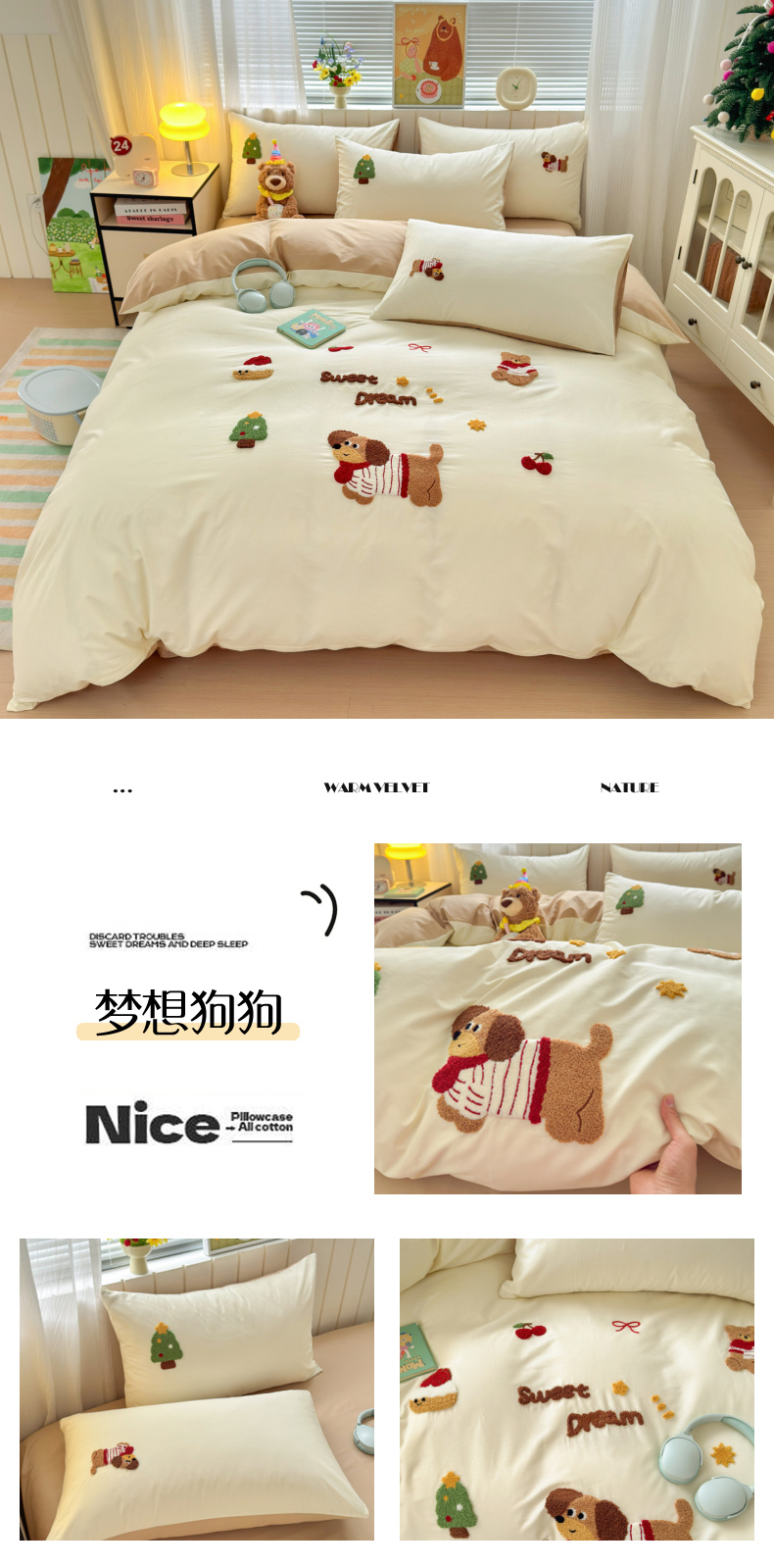 商品名称:如意朵 2026新款全棉小清新绣花四件套第一批 软萌小狗