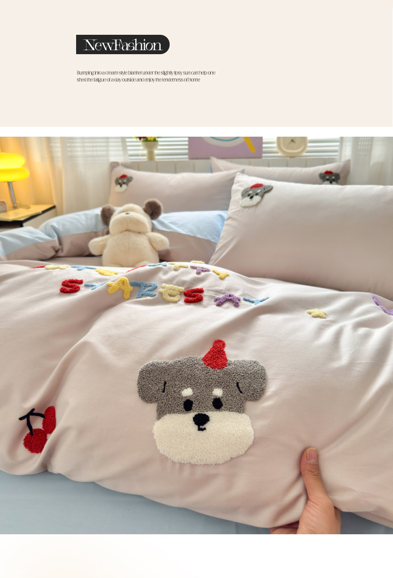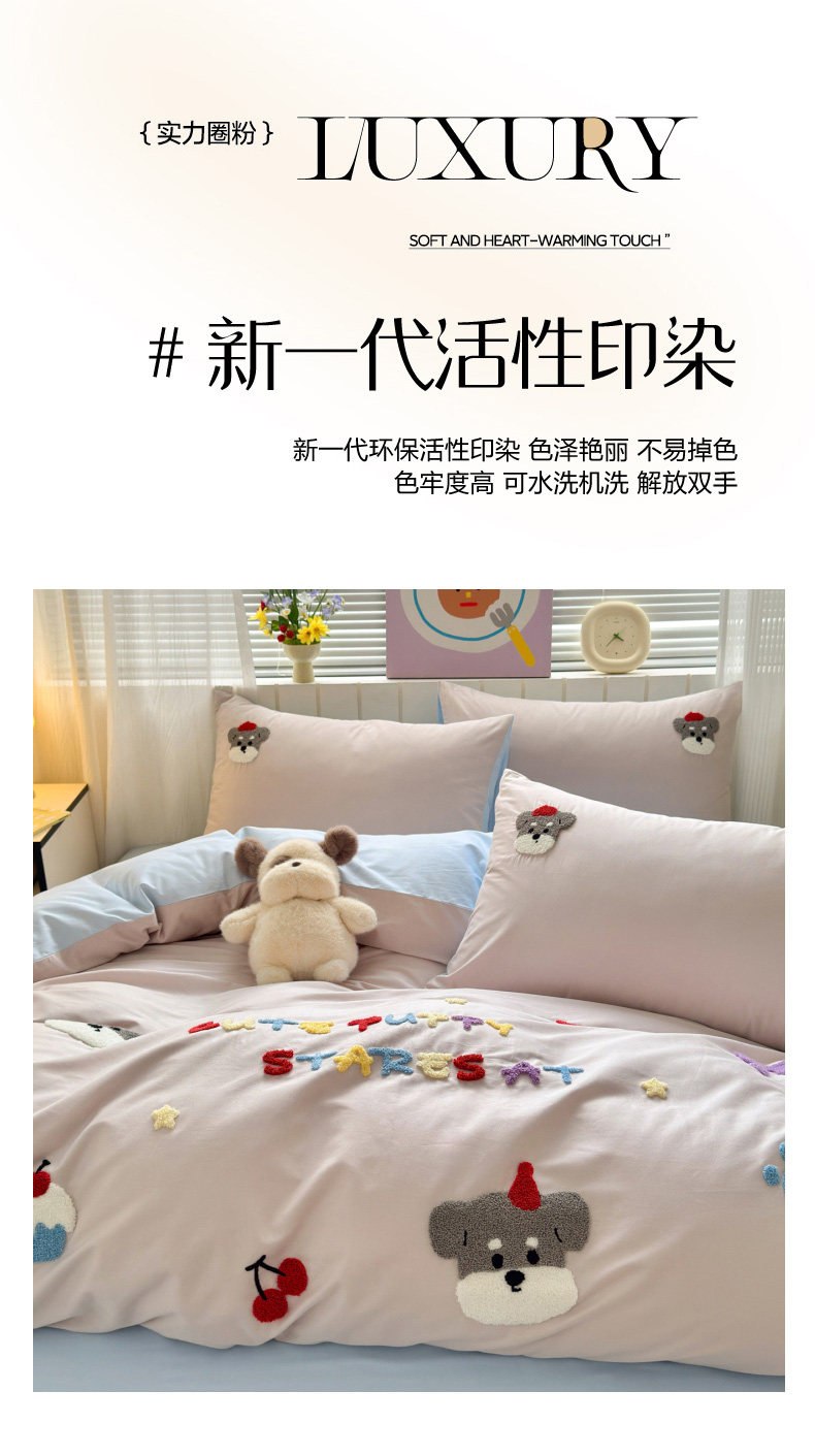 (总)如意朵 2026新款全棉纯棉提花水洗棉绣花四件套(专版花型),开心丫,三只小狗,三只小猫,贪吃卡皮,休闲小猫,抓星熊