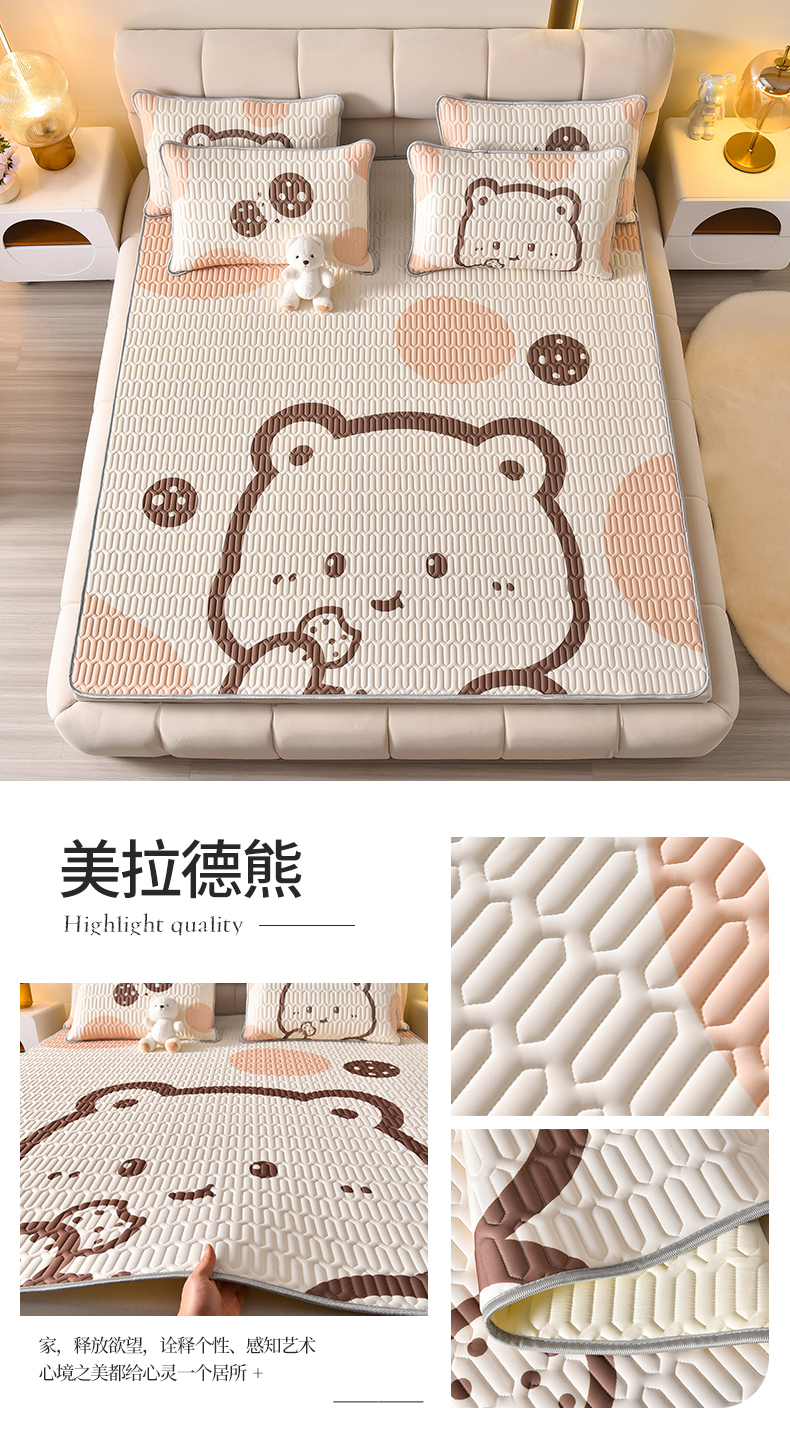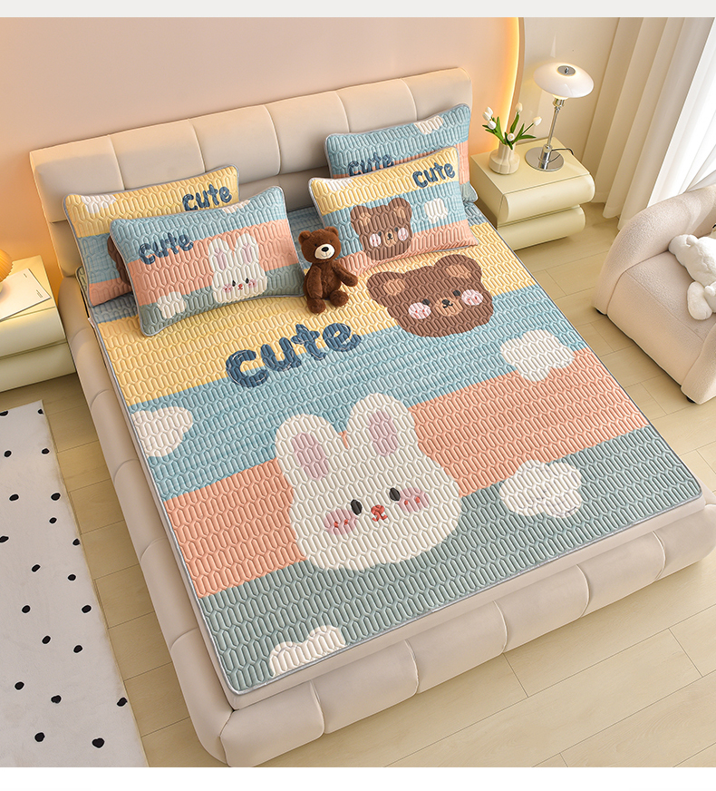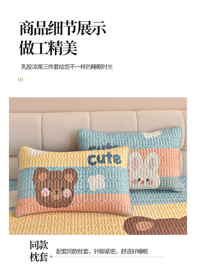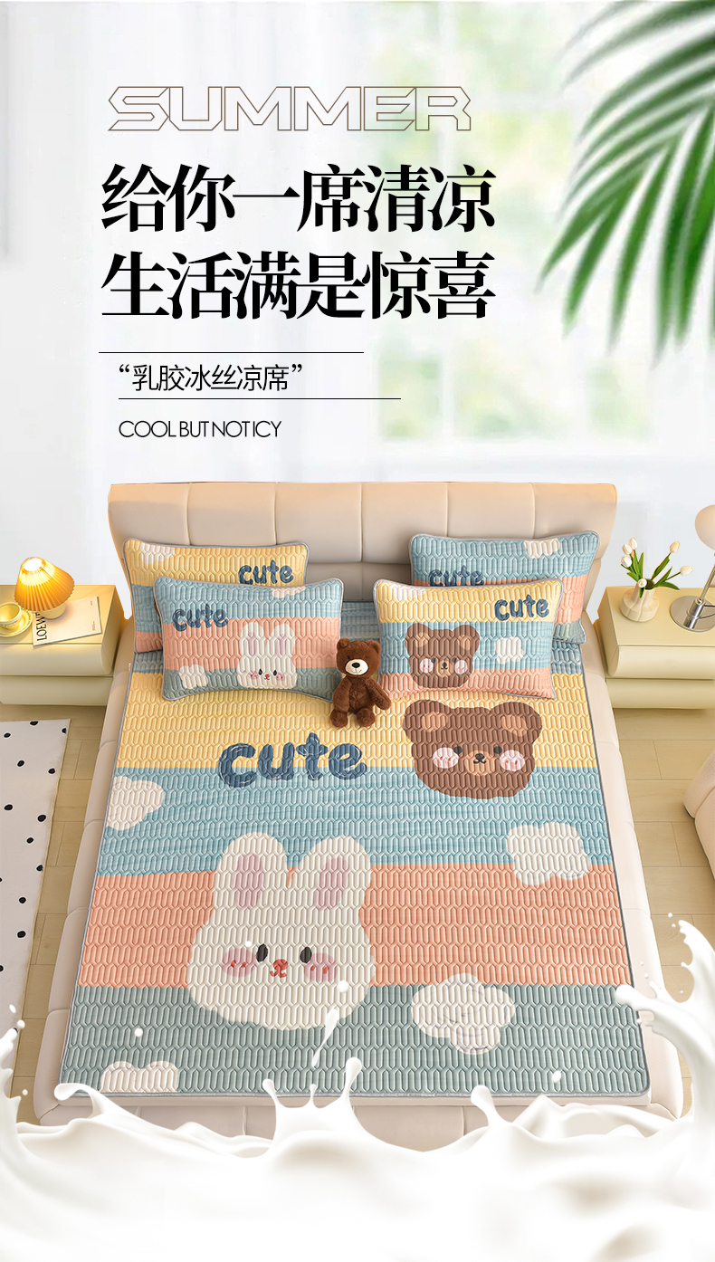 商品名称:炫拼家纺 2026新款凉感丝大版卡通乳胶凉席三件套 彩色心情