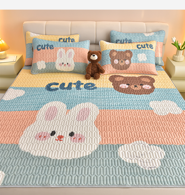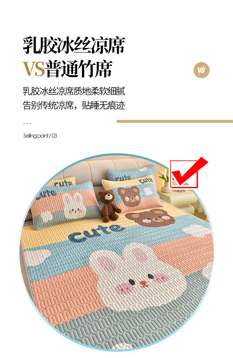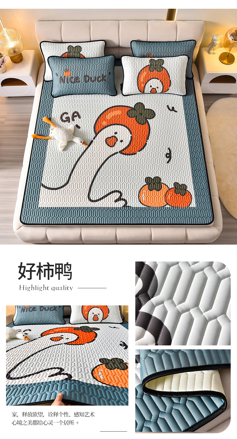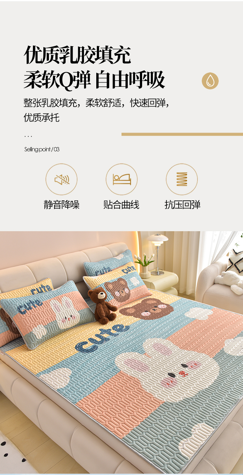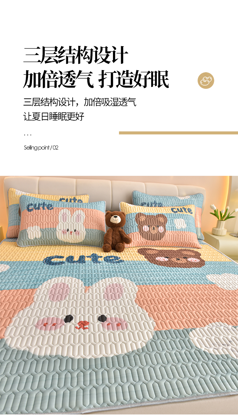 商品名称:炫拼家纺 2026新款凉感丝大版卡通乳胶凉席三件套 彩色心情