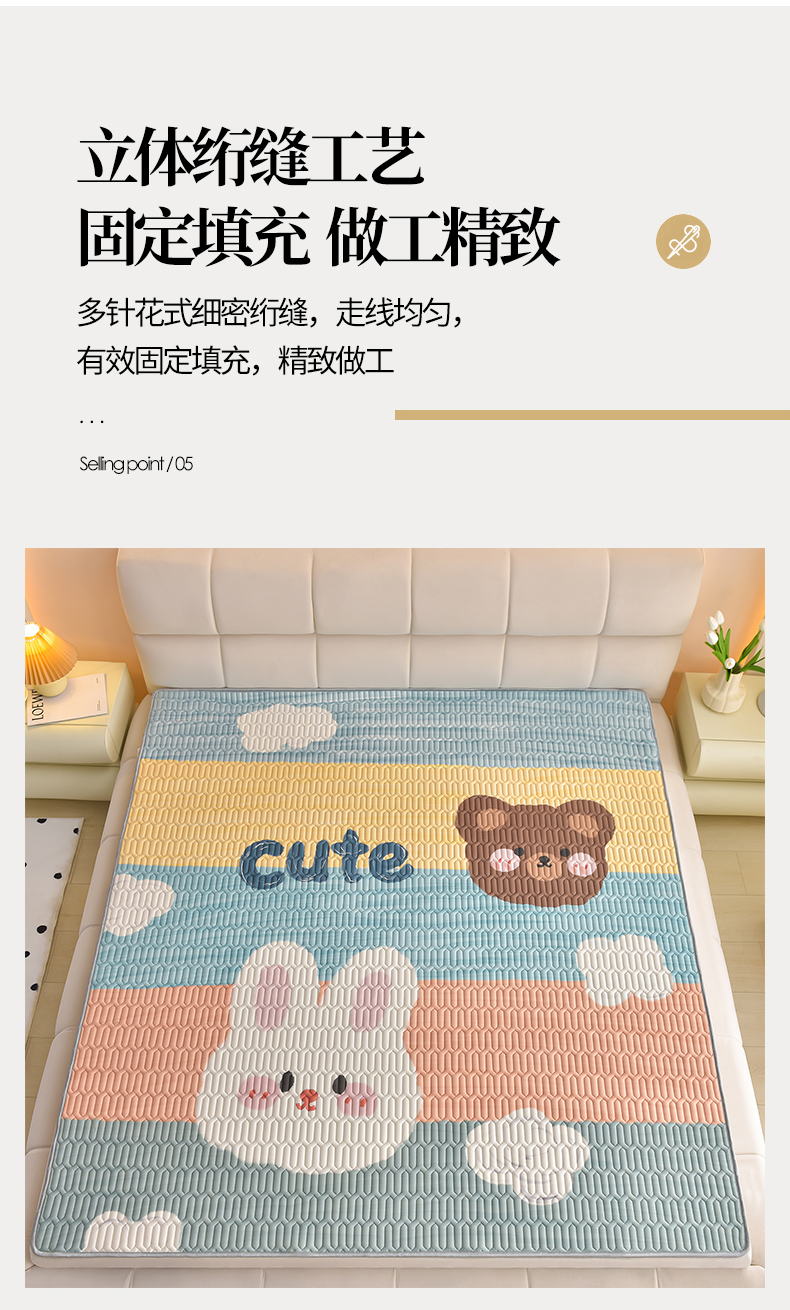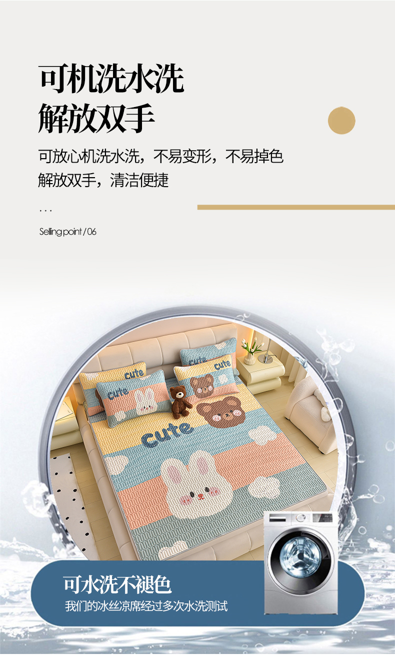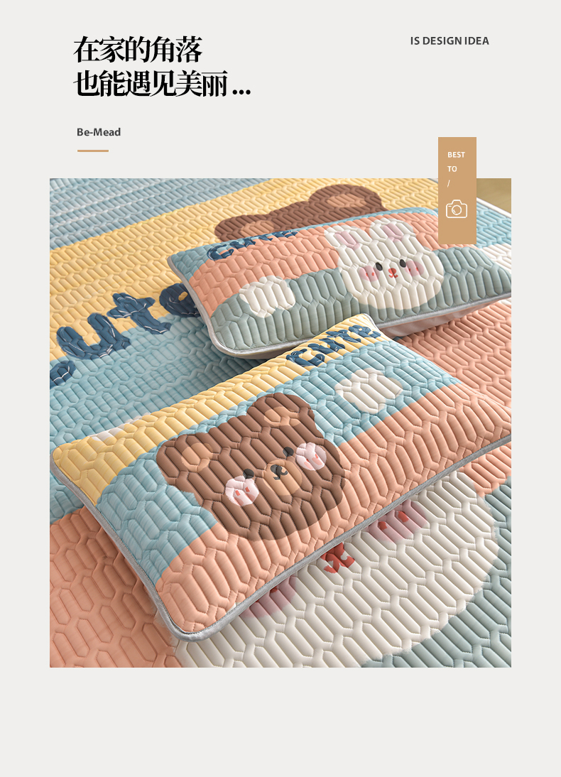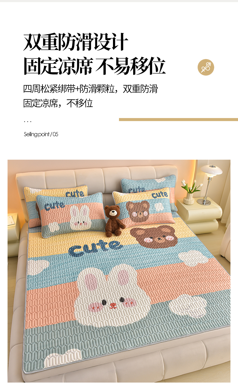 商品名称:炫拼家纺 2026新款凉感丝大版卡通乳胶凉席三件套 彩色心情