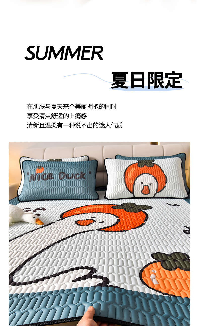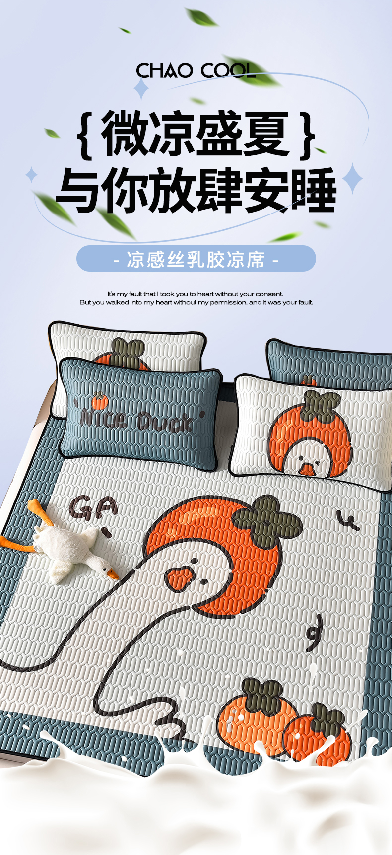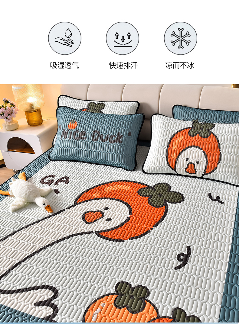 商品名称:炫拼家纺 2026新款凉感丝大版卡通乳胶凉席三件套 好柿鸭