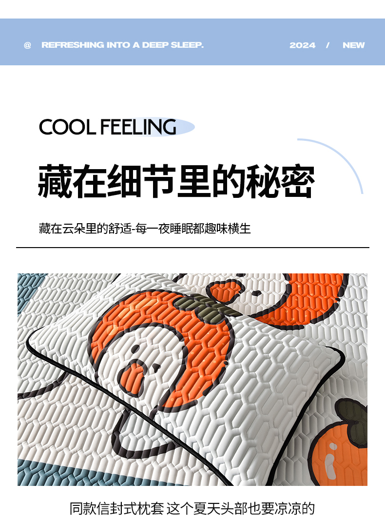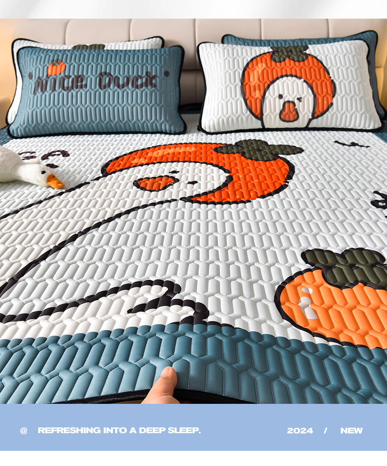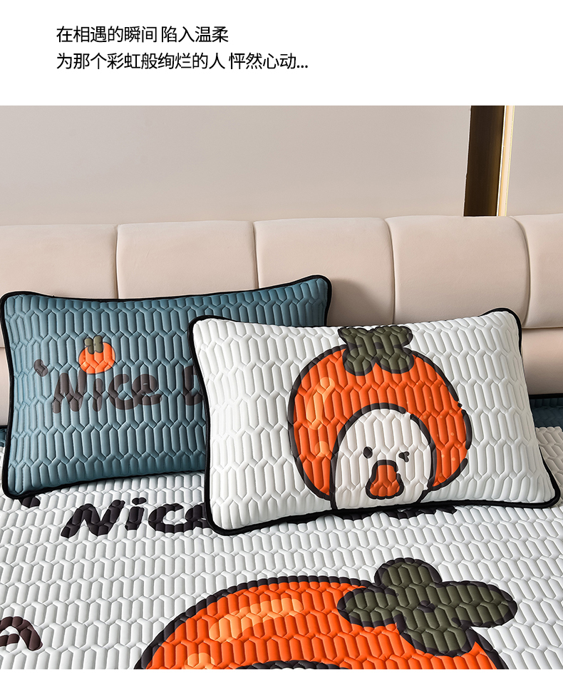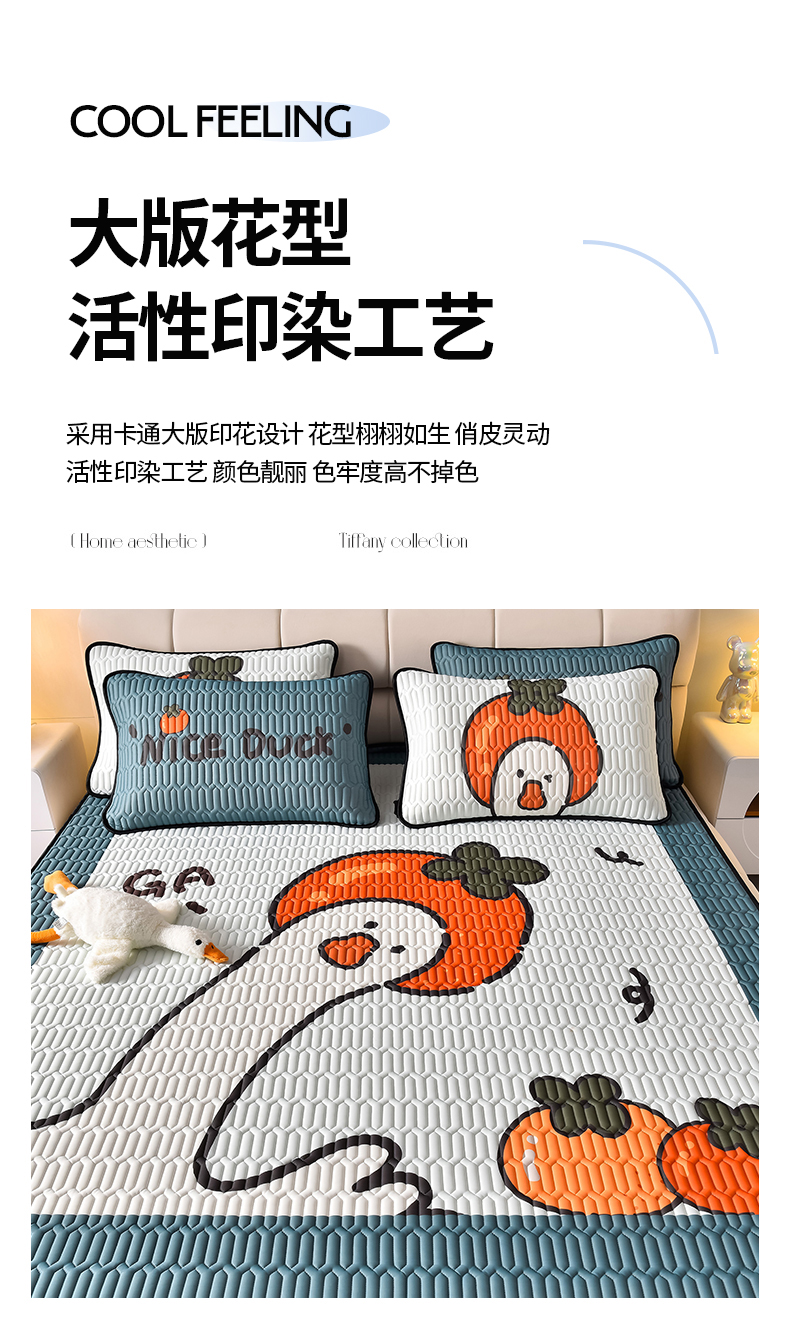 商品名称:炫拼家纺 2026新款凉感丝大版卡通乳胶凉席三件套 好柿鸭