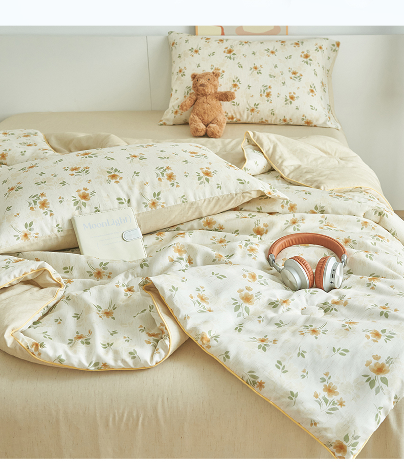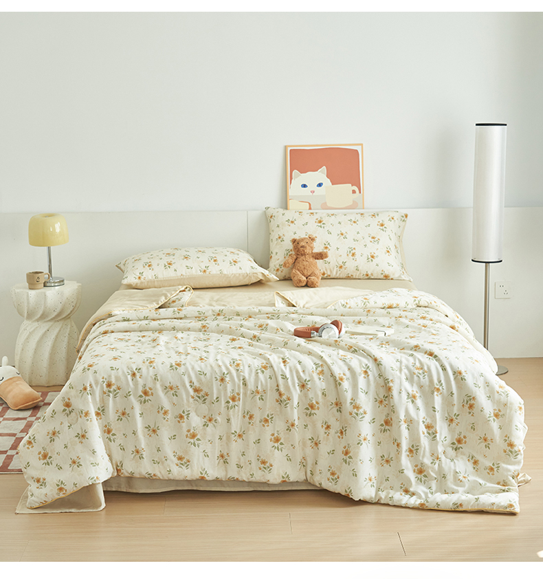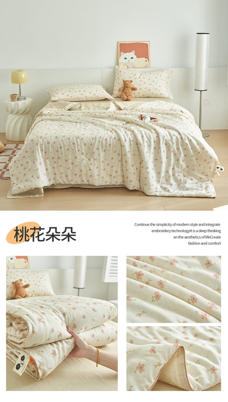 (总)恬思语家纺 2026春夏全棉双层纱棉花夏被空调被夏凉被四件套贝壳边系列,Ш櫻漫语,彩星芒,春晓-粉,春晓-绿,粉粉猫,花从兔-紫,咖啡狗,蓝汐-灰,南瓜派对,浅花町,阳光小马,云絮花-蓝,组合图仅供参考不可下单