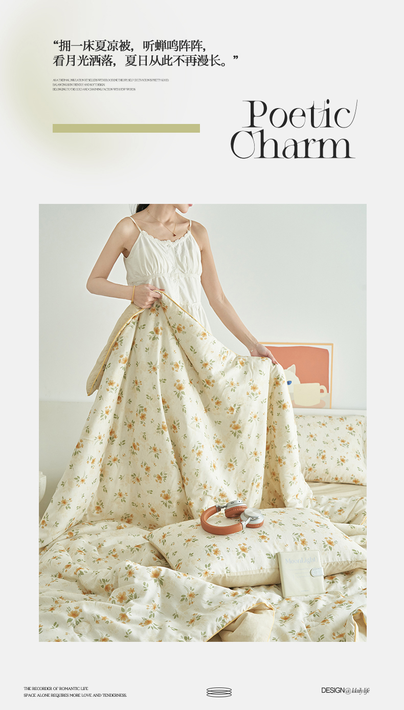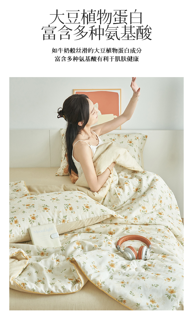 恬思语家纺 2026新款天丝麻大豆印花夏被夏凉被空调被 花叶伴舞