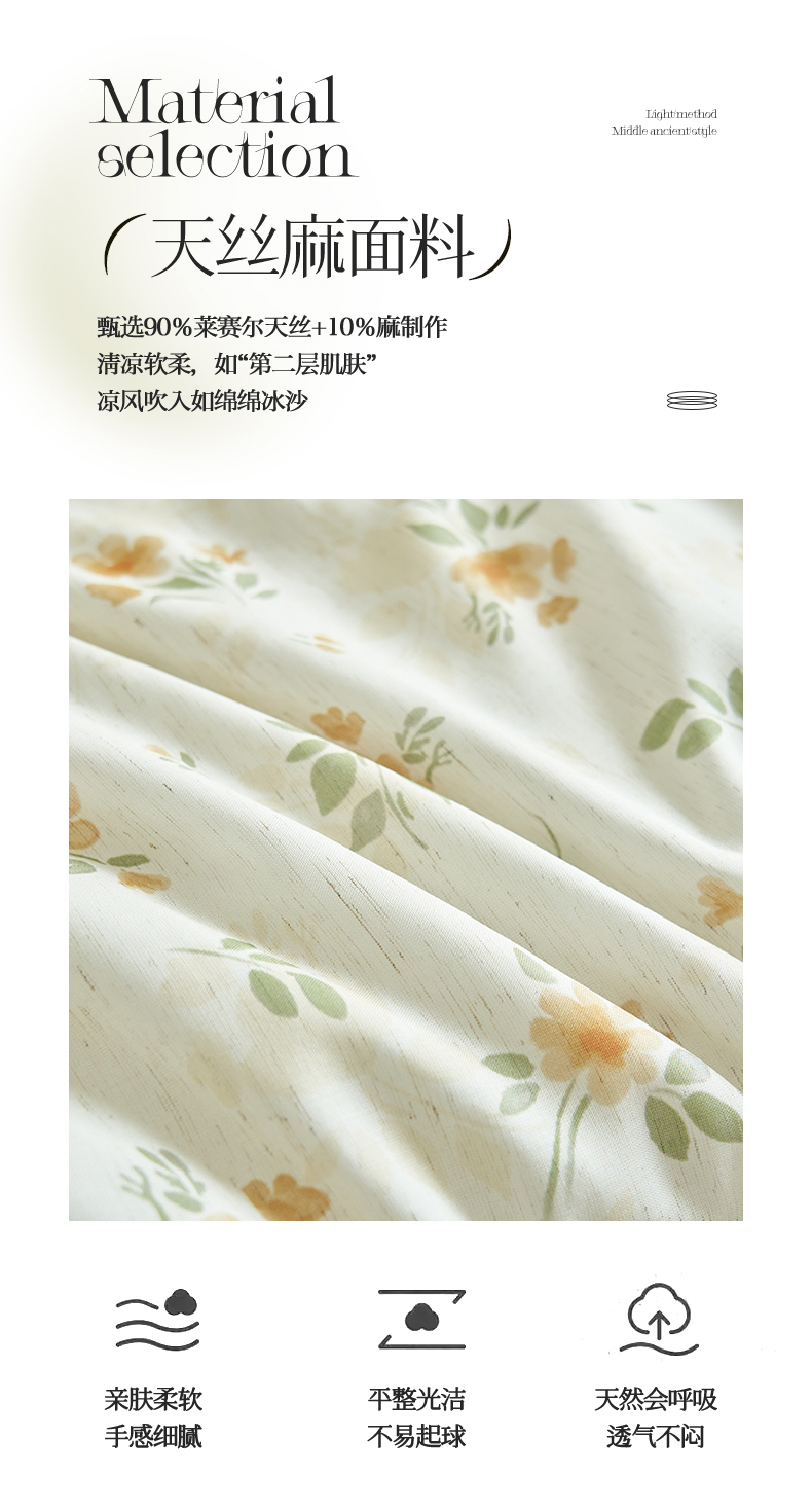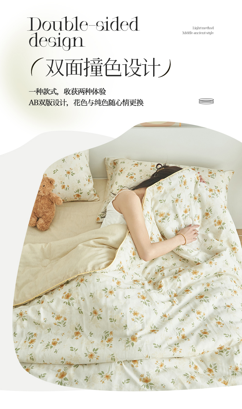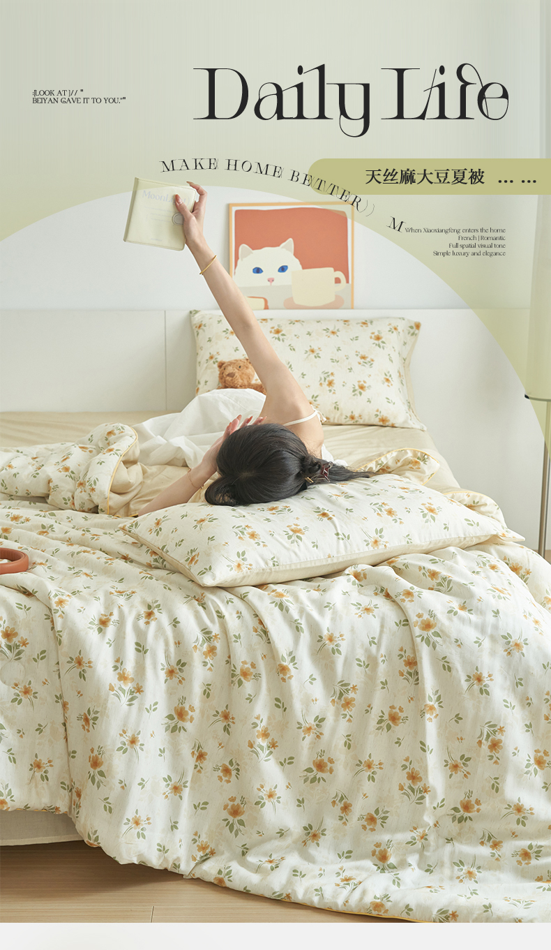 • 91家纺网 家纺一手货源 找家纺 恬思语家纺 2026新款天丝麻大豆印花夏被夏凉被空调被 花叶伴舞