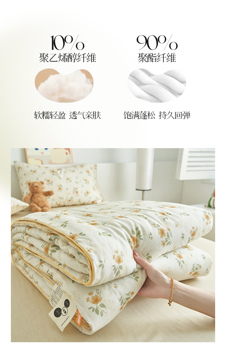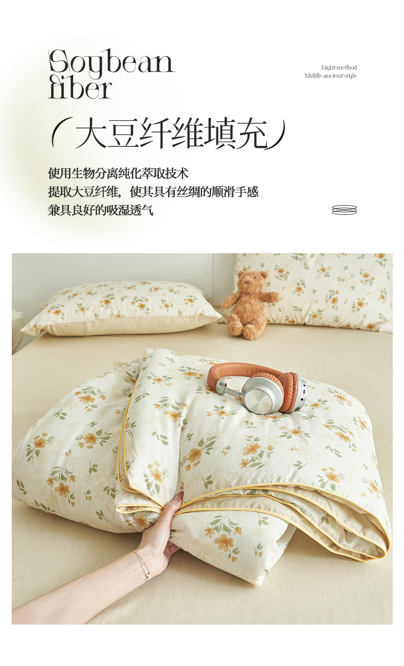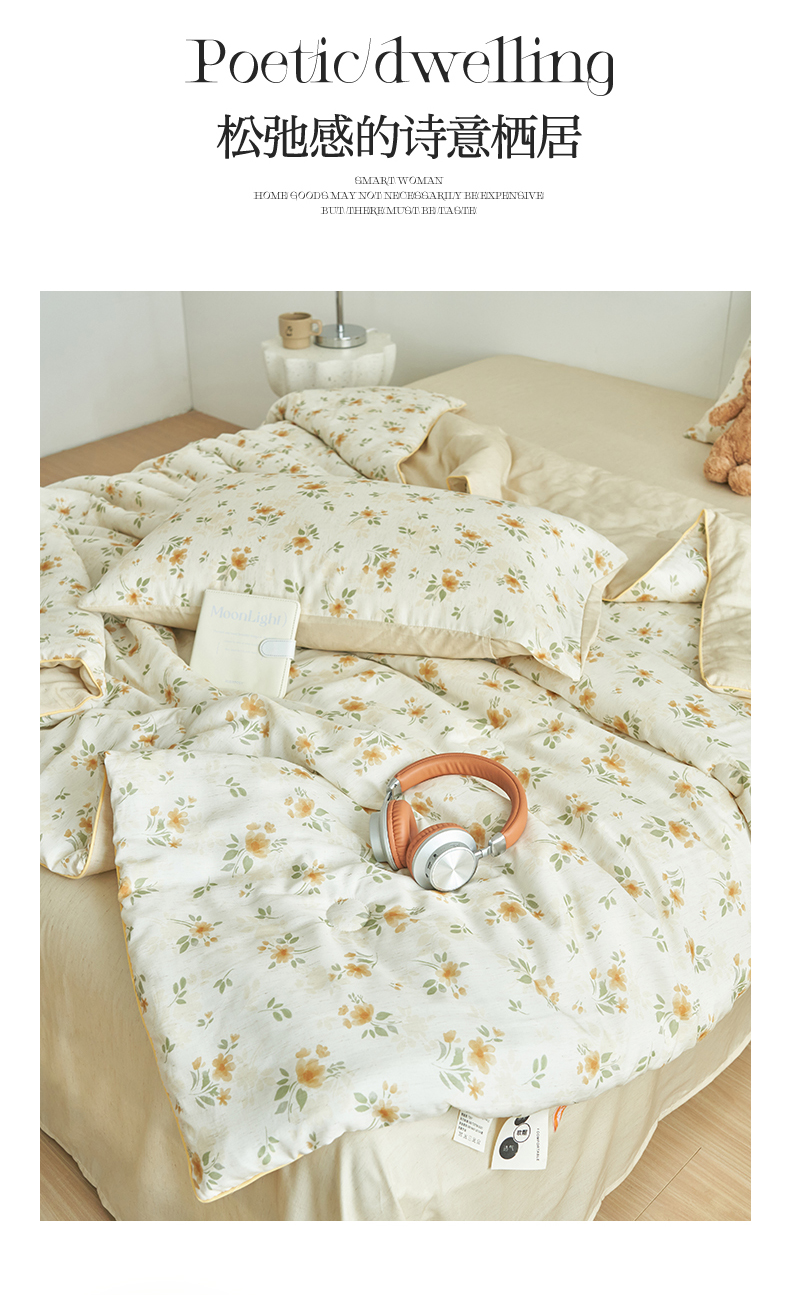 • 91家纺网 家纺一手货源 找家纺 恬思语家纺 2026新款天丝麻大豆印花夏被夏凉被空调被 花叶伴舞