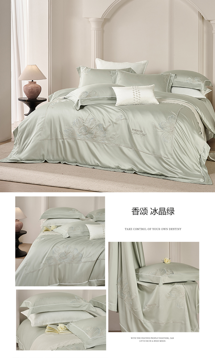 诗黛尔家纺 2026春夏云朵棉刺绣四件套 香颂系列 香颂-冰晶绿
