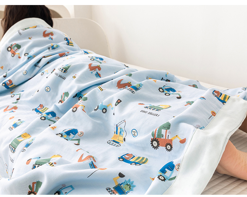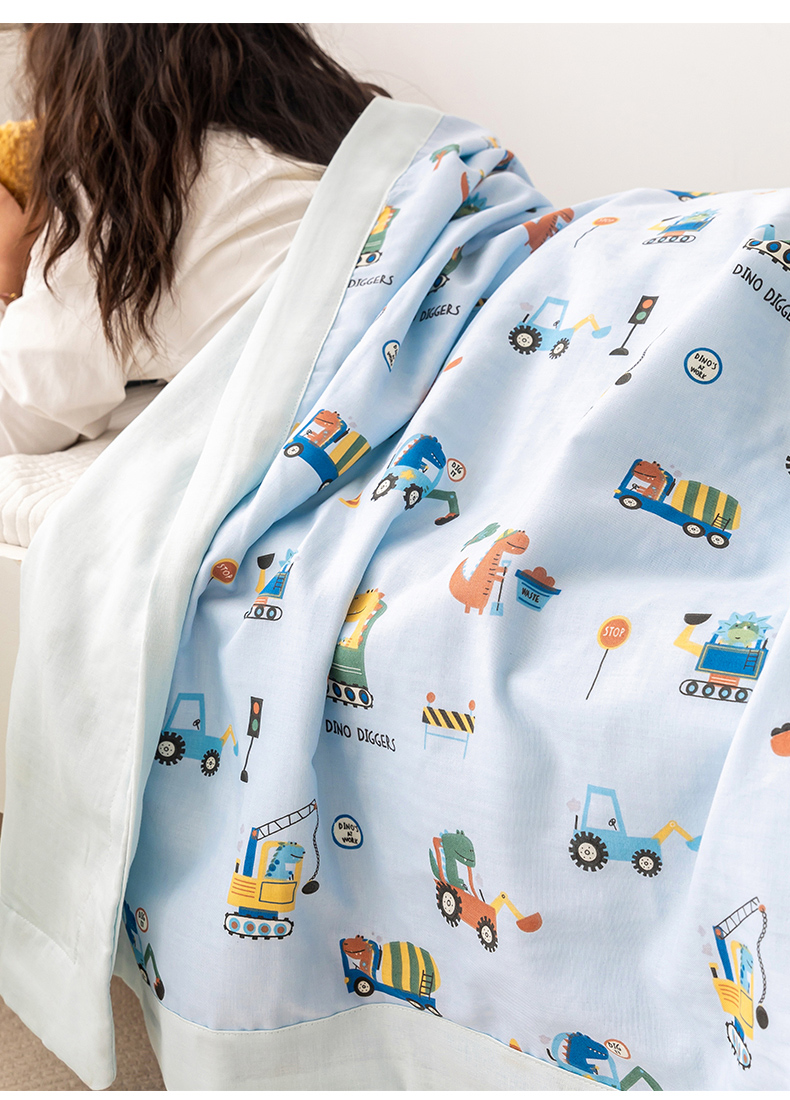 嗨生活 2026新款7A抗菌全棉纱布夏被儿童夏被幼儿园夏被夏被毯 挖机恐龙