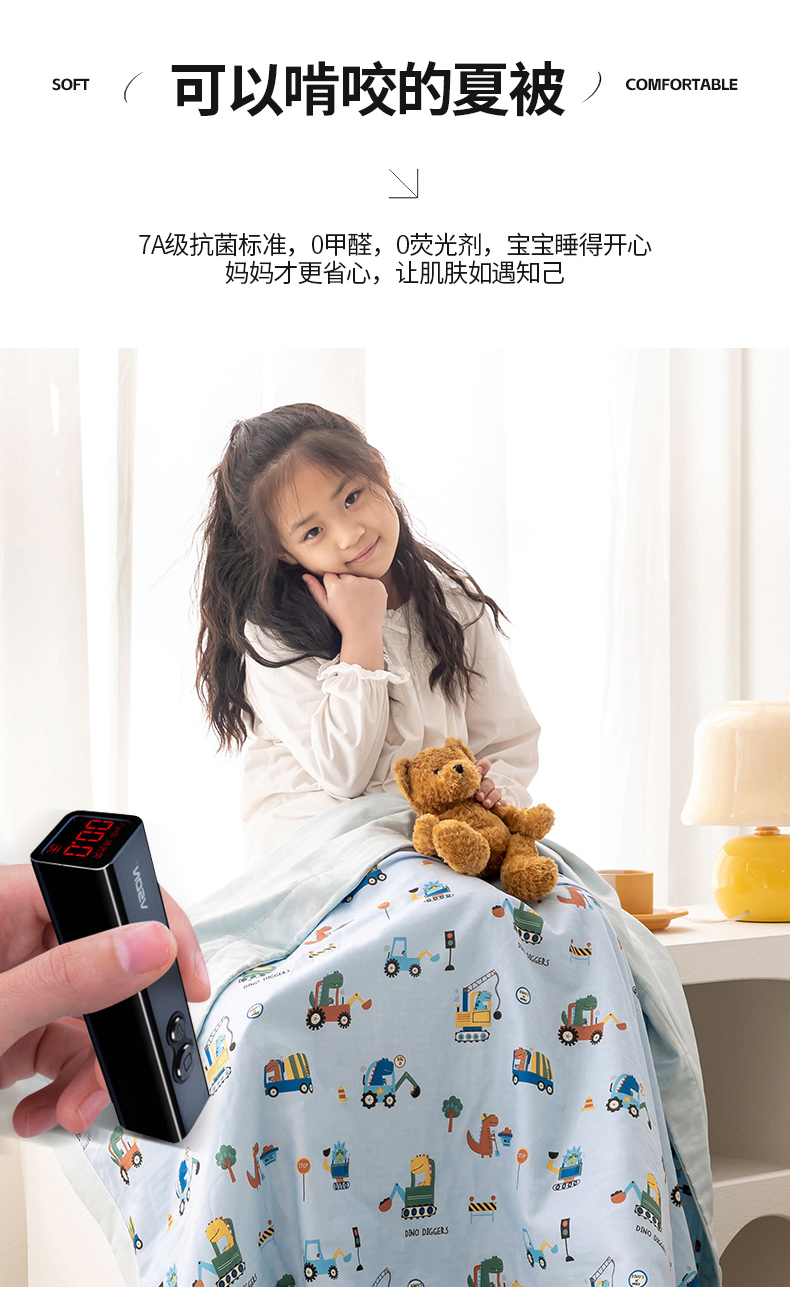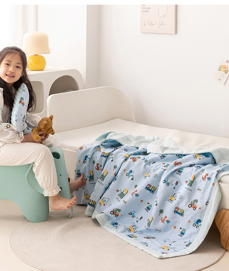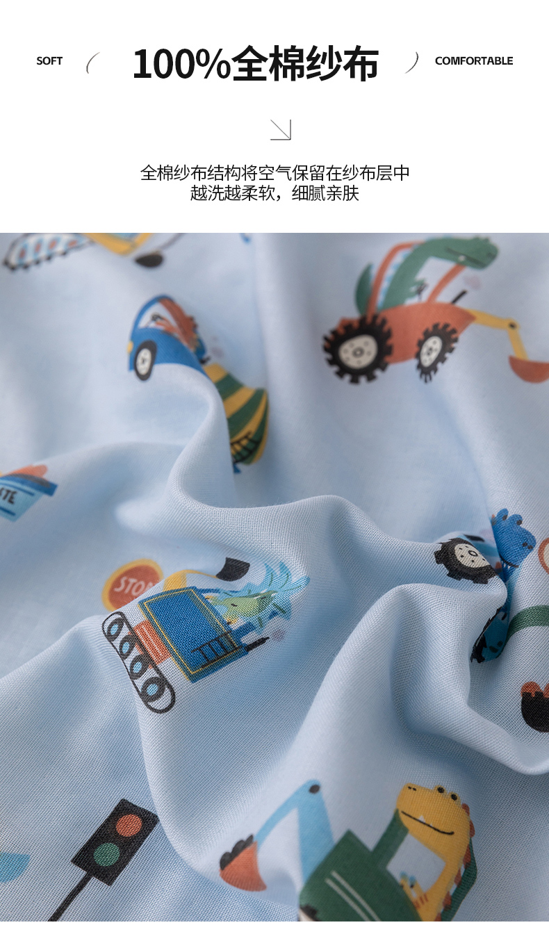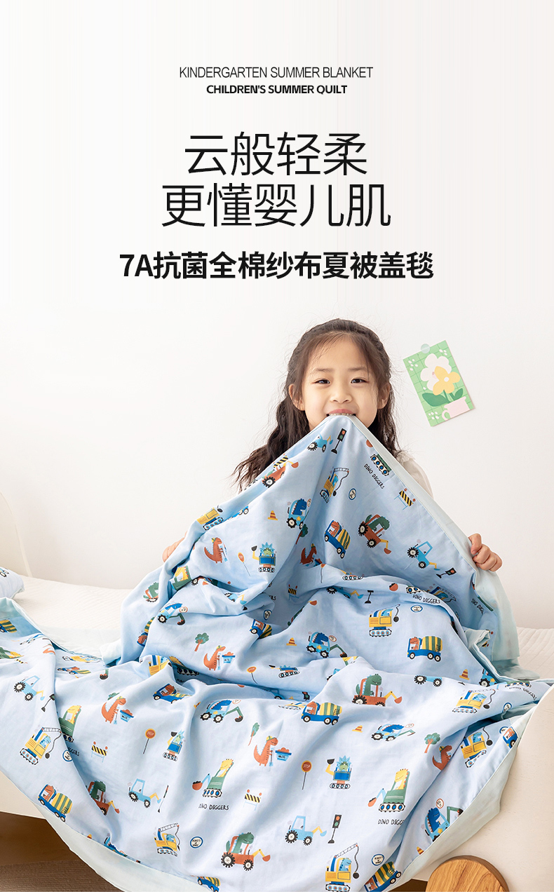 商品名称:嗨生活 2026新款7A抗菌全棉纱布夏被儿童夏被幼儿园夏被夏被毯 挖机恐龙