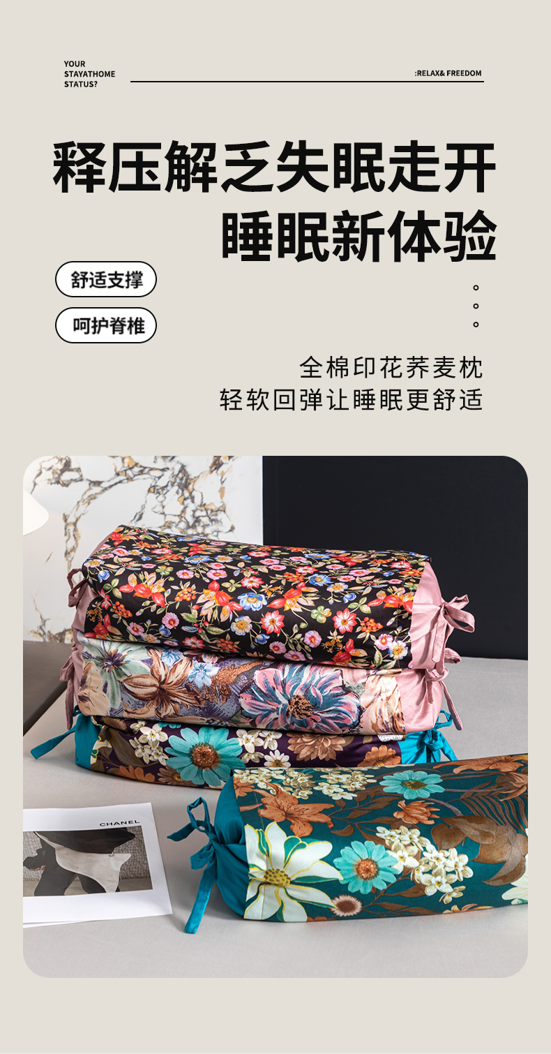 (总)仁宇枕业 2026新款新品全棉长绒棉花开富贵系列全荞麦枕头枕芯
