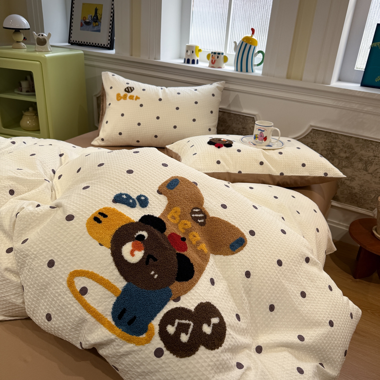 当前位置: 91家纺网 > 商品网购 > 床品套件 > 四件套 > 毛巾绣四件套 > 珺柔家纺 2026新款卡通华夫格毛巾绣四件套 布丁象