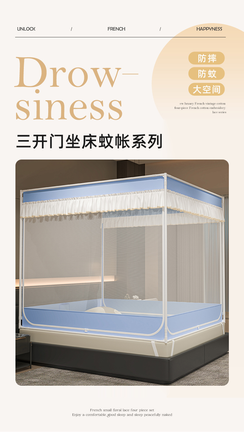 当前位置: 91家纺网 > 商品网购 > 床上用品 > 蚊帐 > 坐床式蚊帐 > 千逸虹 2026新款外穿U型三开门坐床蚊帐 紫