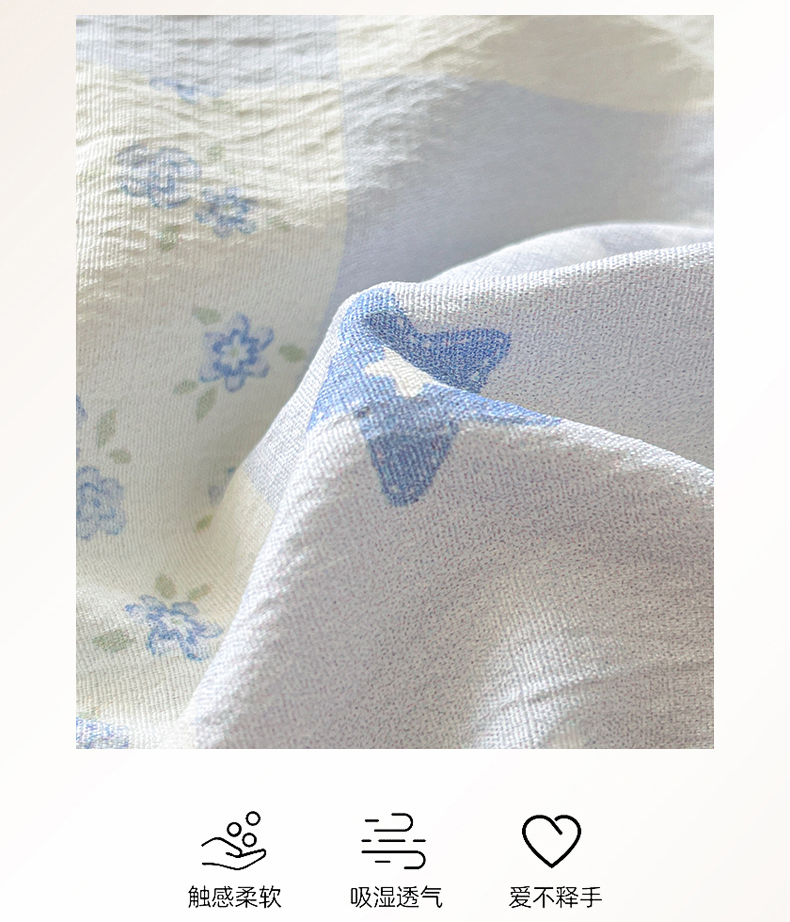 当前位置: 91家纺网 > 商品网购 > 被子 > 夏被 > 盛秋家纺 2026新款皱皱纱印花夏被-萝拉 可可颂蓝+天空蓝