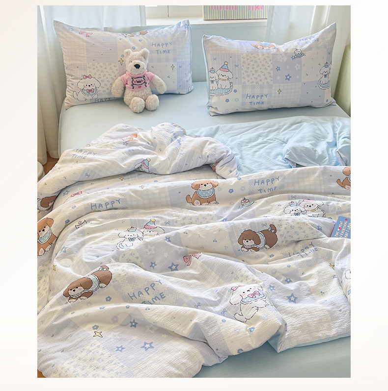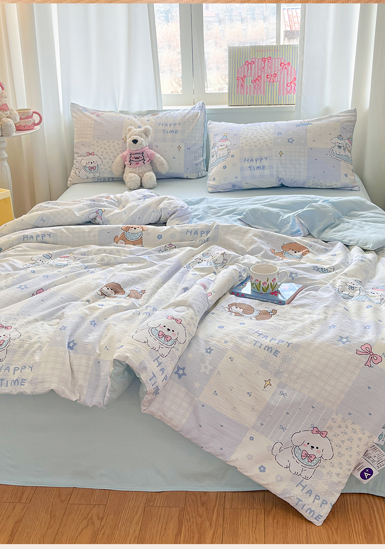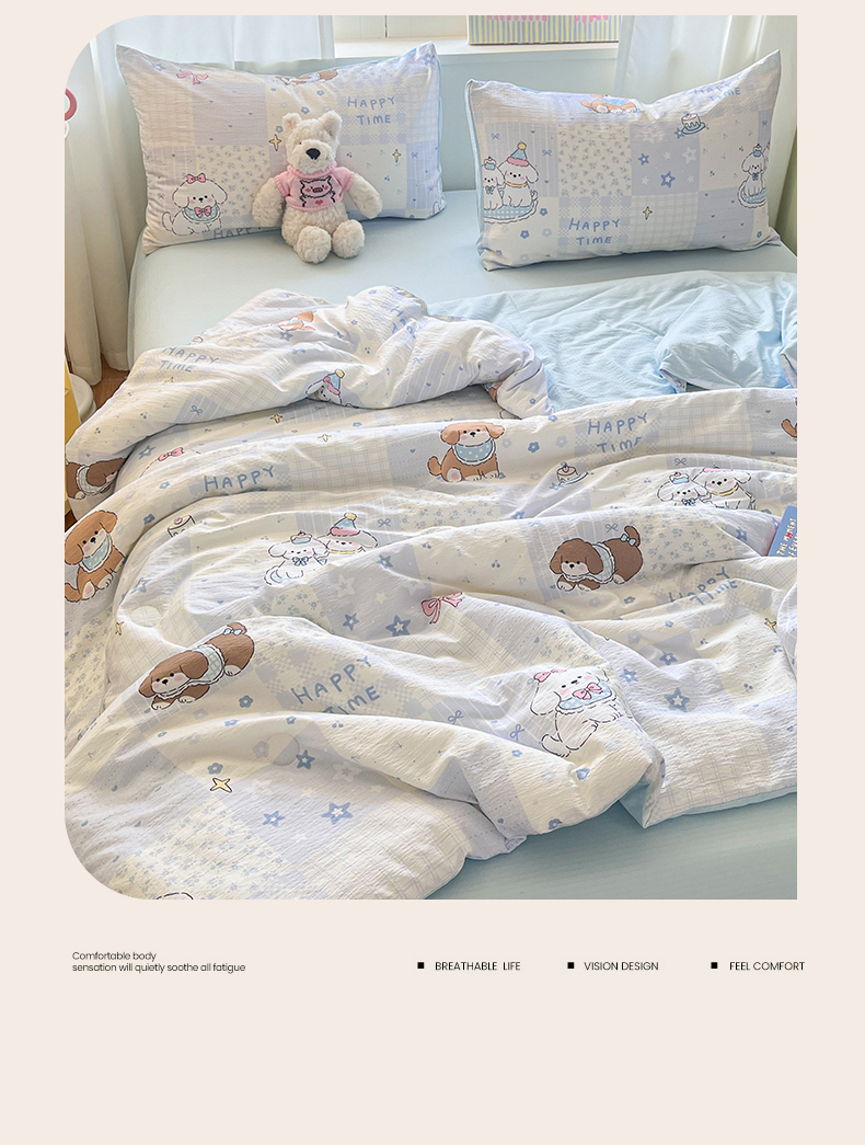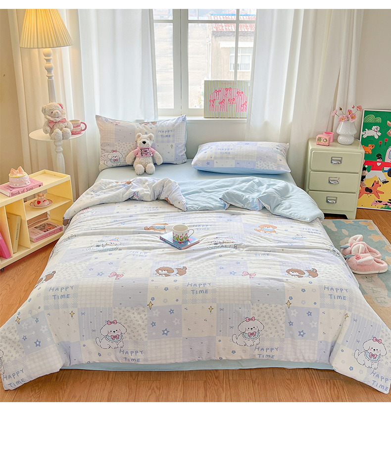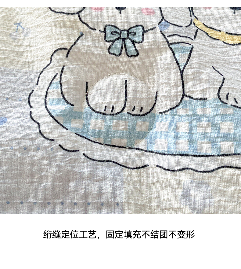 (总)盛秋家纺 2026新款皱皱纱印花夏被-萝拉,生日派对+清新绿,格子花园+奶油粉,格子铺粉+天空蓝,花丛小熊+奶油粉,可可颂蓝+天空蓝,恐龙游记+天空蓝,快乐时光+深咖,麻薯团+米驼,派对狗+深咖,森林小象+奶油粉,小狗来信+奶油粉,小伙伴+米驼,小熊小花+麦绿,修勾咖+米驼