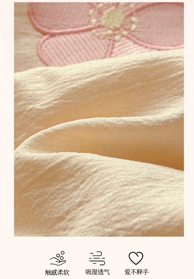 盛秋家纺 2026新款皱皱纱散点绣夏被-妮可 花朵奶昔白