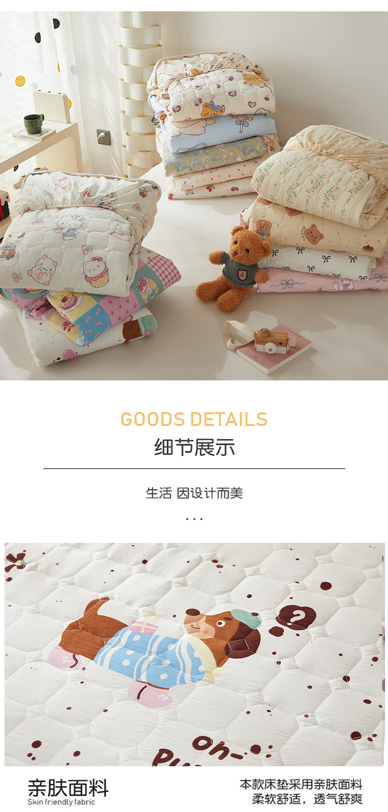 (总)舒居家纺 2025新款亲肤夹棉卡通 防水床笠床垫席梦思床套床罩(不宜机洗,建议手洗)),奥利奥小熊,靠谱小狗,慢生活,奶猫,丝带飞飞兔,甜甜黄油熊,小波点,小猫逃离季,小猫线球,小甜派,心跳回声,园镜兔