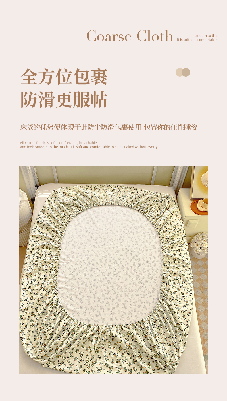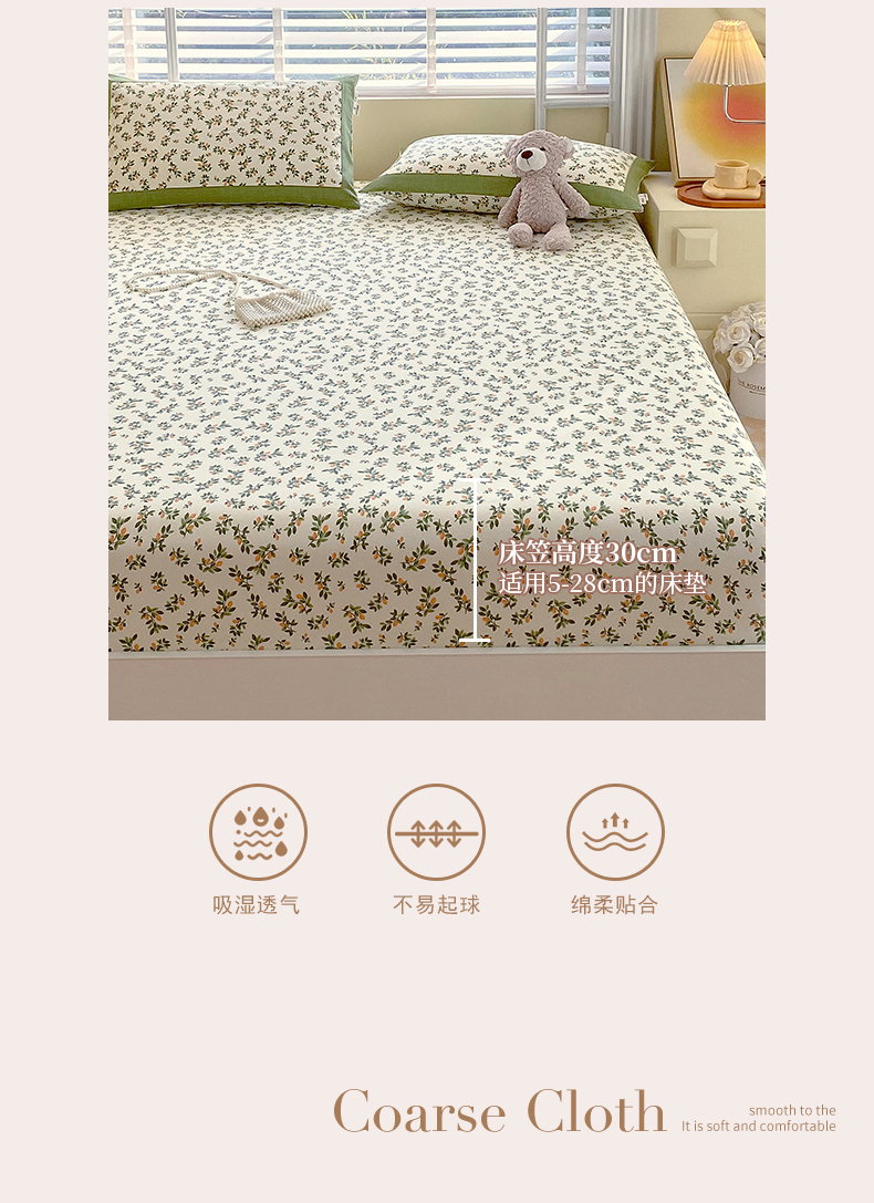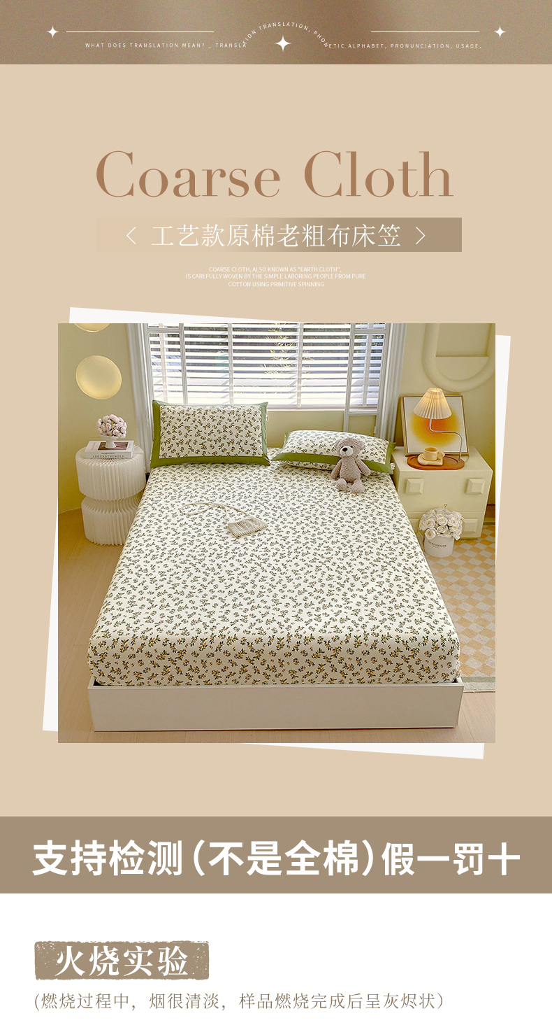 商品名称:春皖家纺 2026新款全棉老粗布工艺款单床笠床笠单件 翠林音