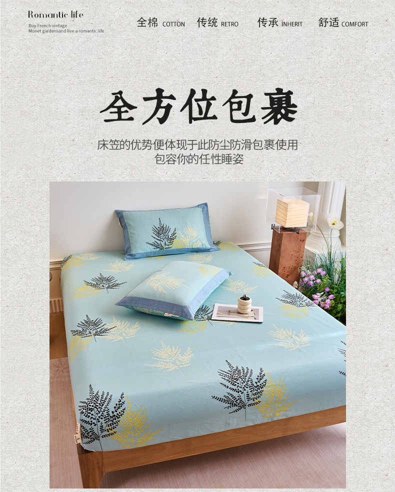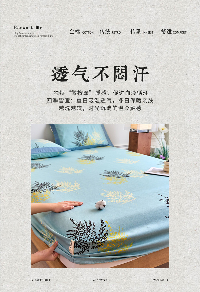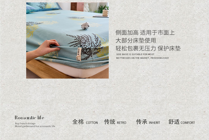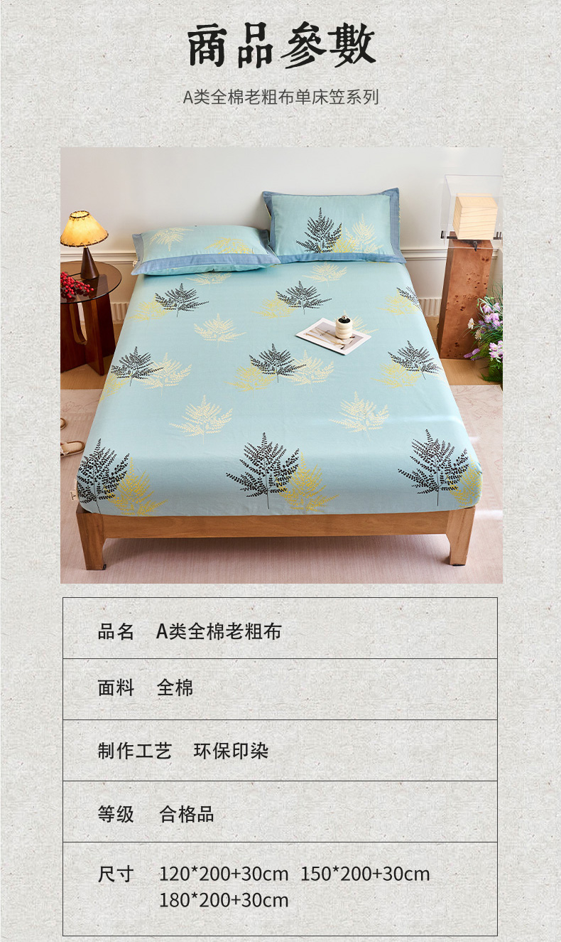 商品名称:春皖家纺 2026新款全棉老粗布工艺款单床笠床笠单件 轻舞