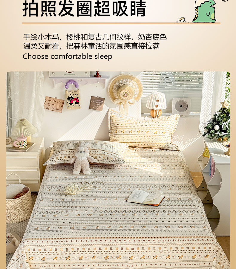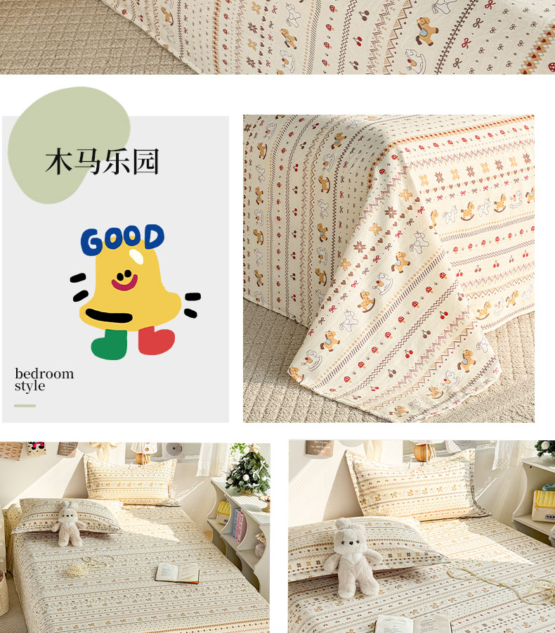 商品名称:禧缘家纺(原梦想家) 2026新款云感棉童话风床单单品床单单件 木马乐园