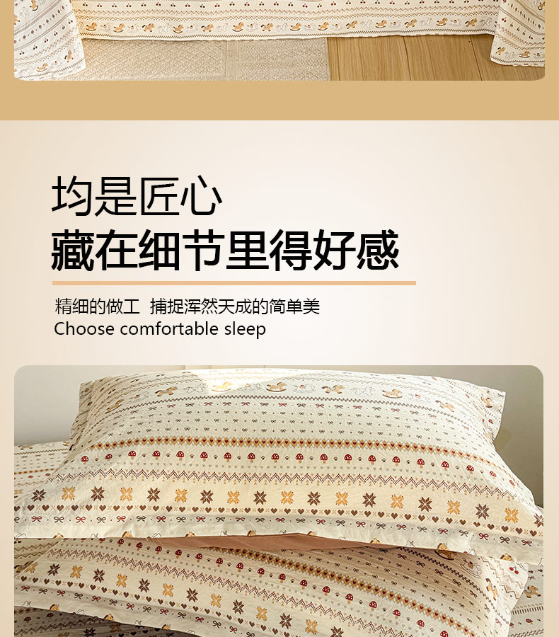 (总)禧缘家纺(原梦想家) 2026新款小清新皱皱纱木棉床裙式床笠印花单枕套,彩虹,蝶梦,花田,沐春,南瓜,泡芙,甜筒,童话,兔兔,雾迟,星星,月光