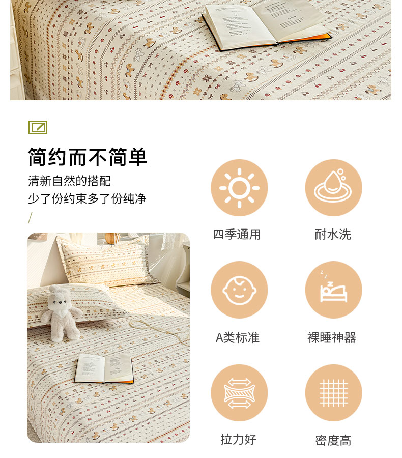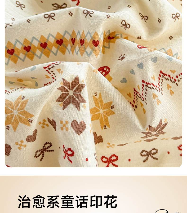 (总)禧缘家纺(原梦想家) 2026新款小清新皱皱纱木棉床裙式床笠印花单被套,彩虹,蝶梦,花田,沐春,南瓜,泡芙,甜筒,童话,兔兔,雾迟,星星,月光