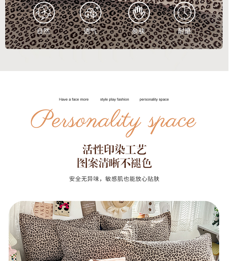 商品名称:禧缘家纺(原梦想家) 2026新款云感棉童话风被套单品被套单件 咖色豹纹
