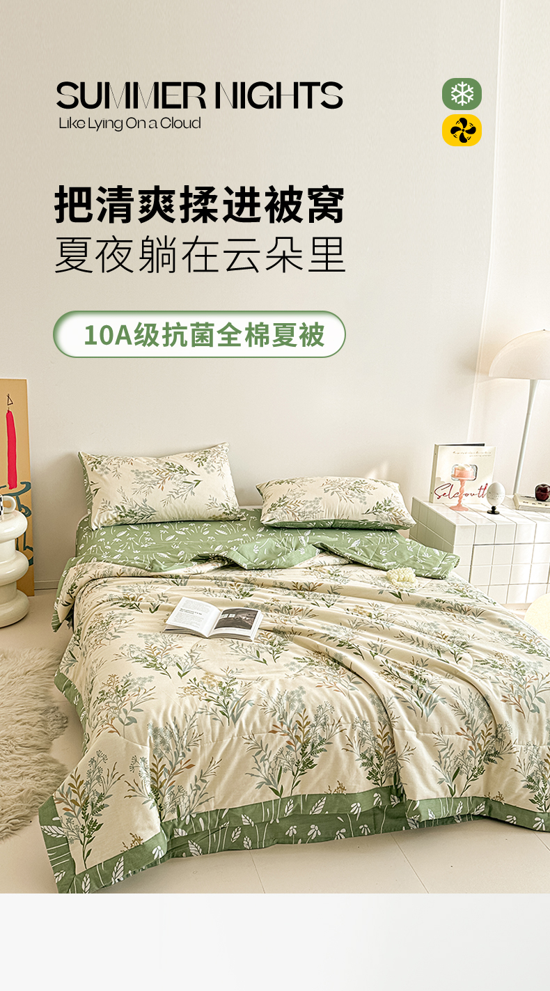 宝士康家纺 2026新款10A抗菌全棉夏被 被子被芯仙草