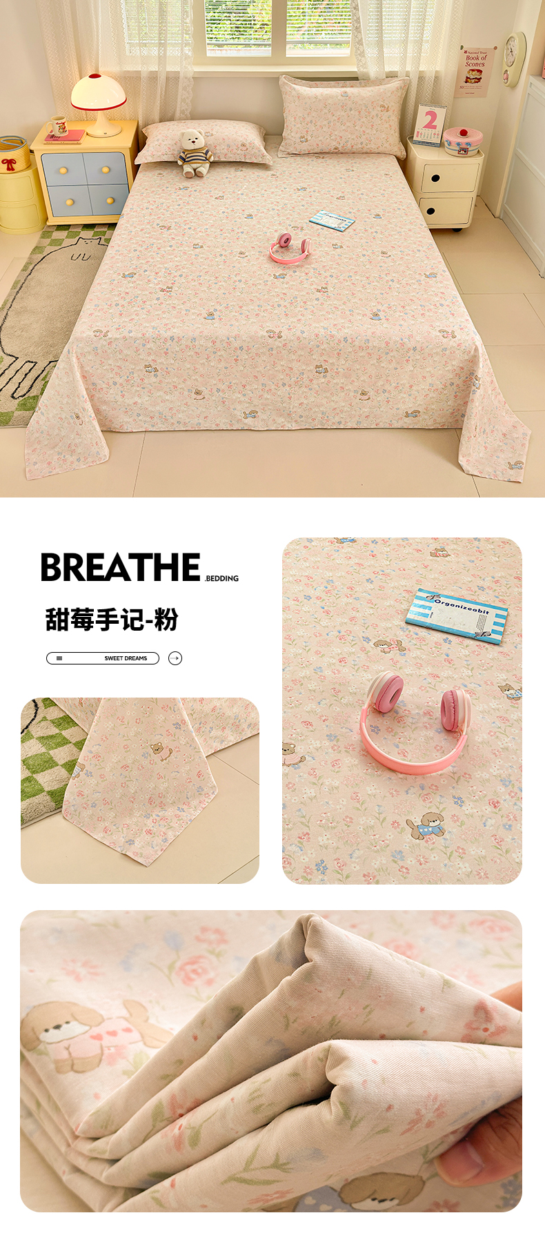 当前位置: 91家纺网 > 商品网购 > 床上用品 > 床单 > 拾物记 2026新款第二批A类新疆全棉12868单品床单系列(提供买家秀和A类质检报告) 甜莓手记-粉