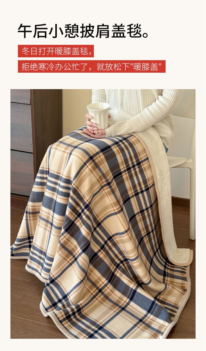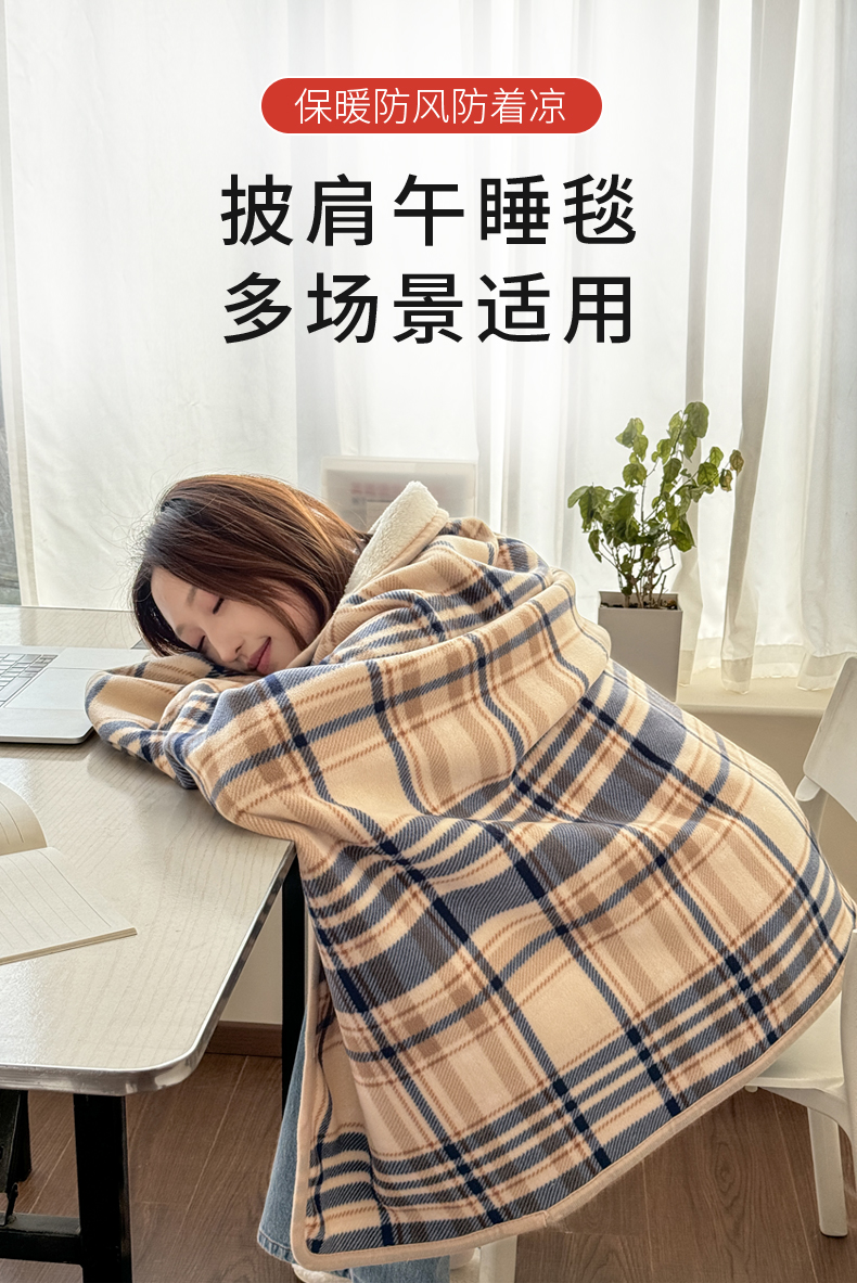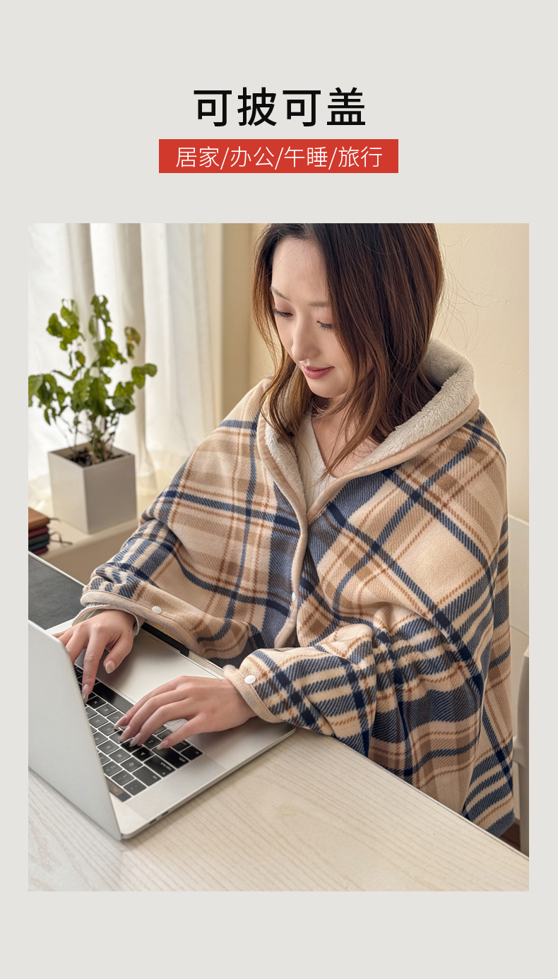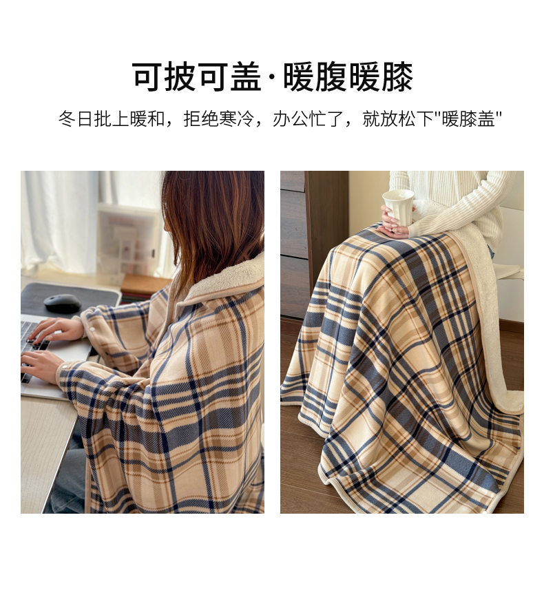 商品名称:丹本家纺 2026新款跨境电商爆款多功能办公室午休毯礼品毯可穿披肩盖毯毛毯毯子 蓝咖