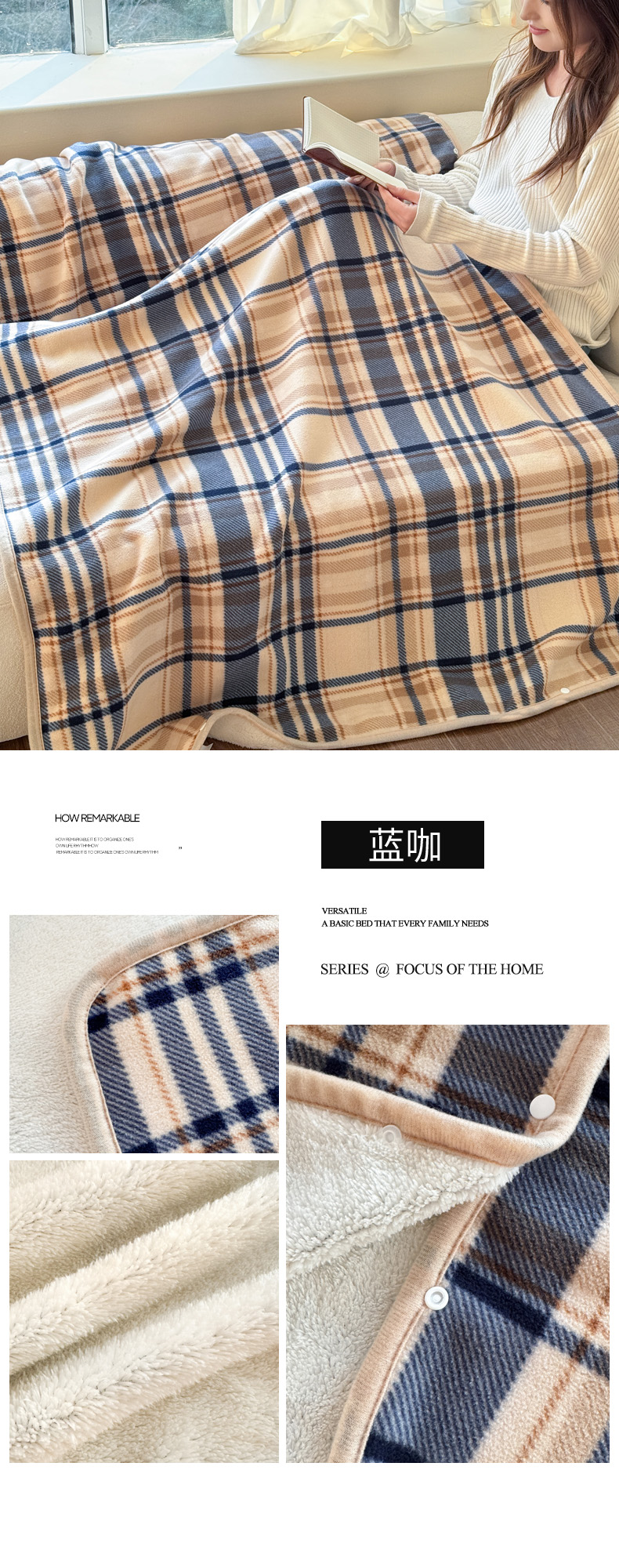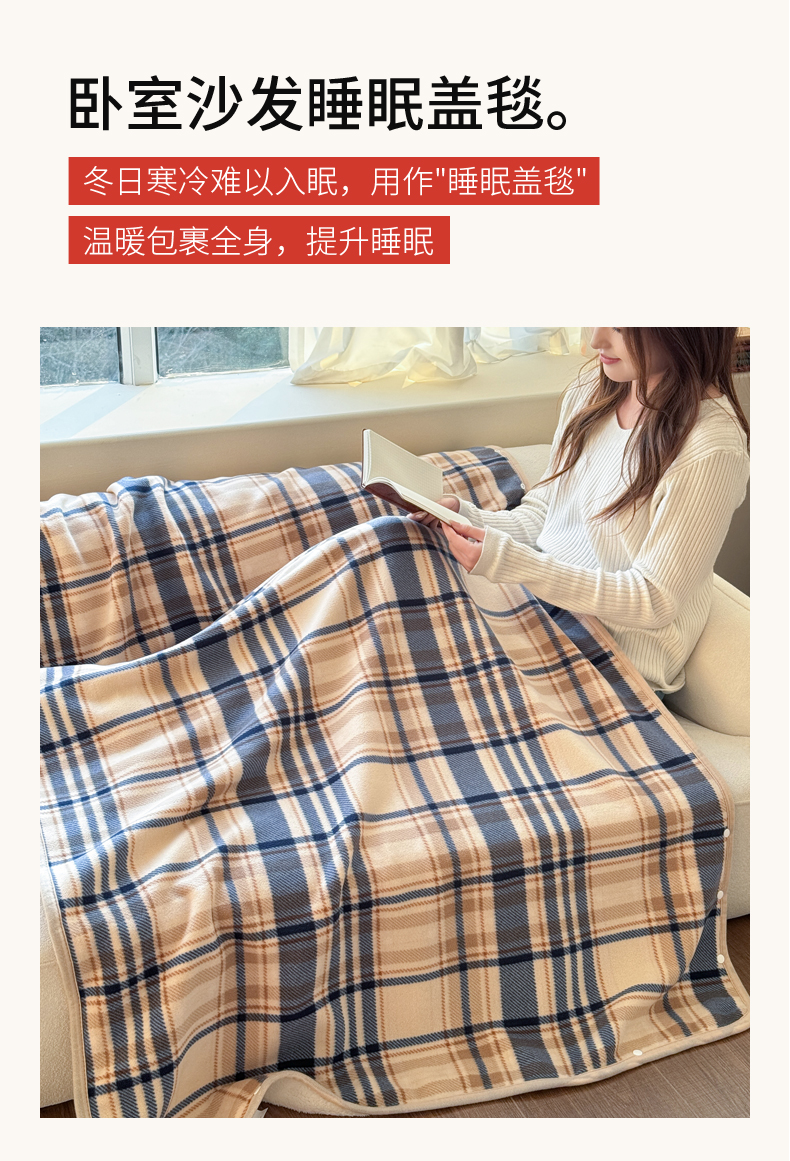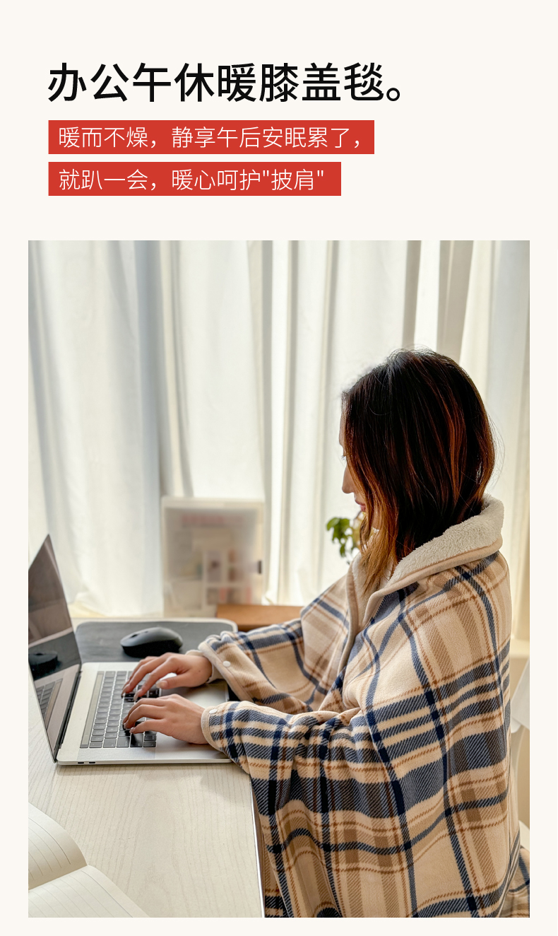 商品名称:丹本家纺 2026新款跨境电商爆款多功能办公室午休毯礼品毯可穿披肩盖毯毛毯毯子 蓝咖