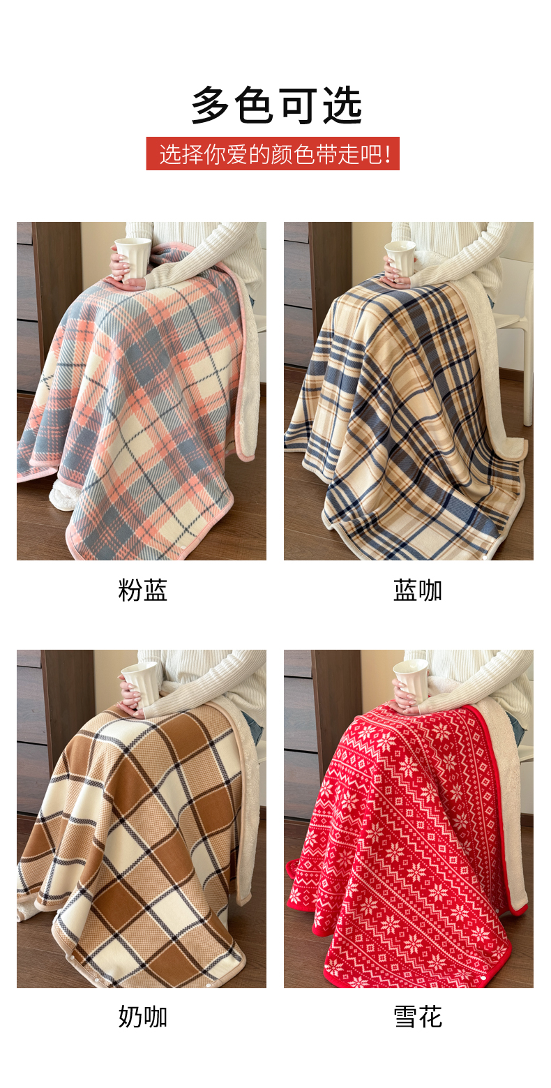 (总)丹本家纺 2026新款跨境电商爆款多功能办公室午休毯礼品毯可穿披肩盖毯毛毯毯子,粉蓝,蓝咖,奶咖,雪花