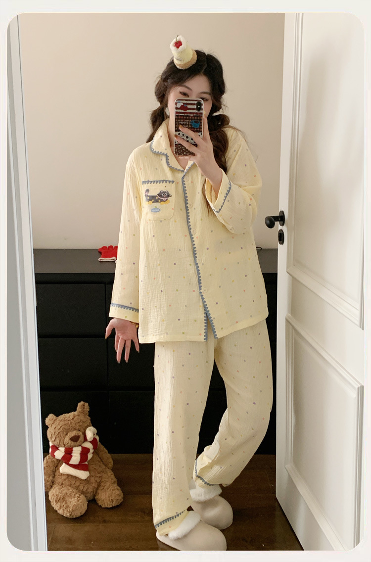 (总)洛兰沙家居馆 纯棉纱布睡衣女士绉布套装双层纱布荷叶领长袖长裤家居服女套装 ,花色1,花色2,花色3,花色4,花色5,花色6,花色7,花色8,花色9,花色10,花色11,花色12