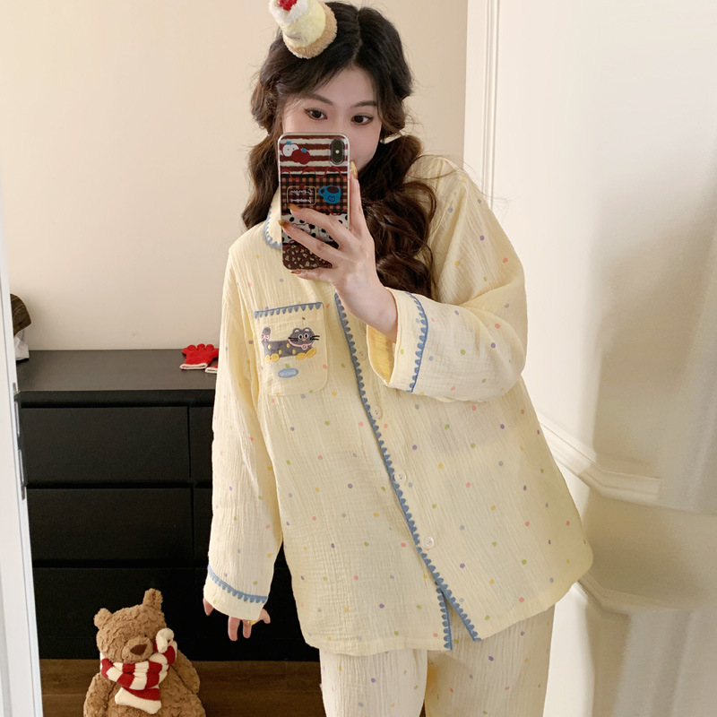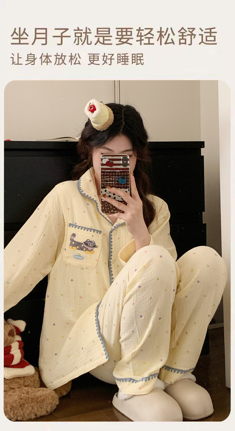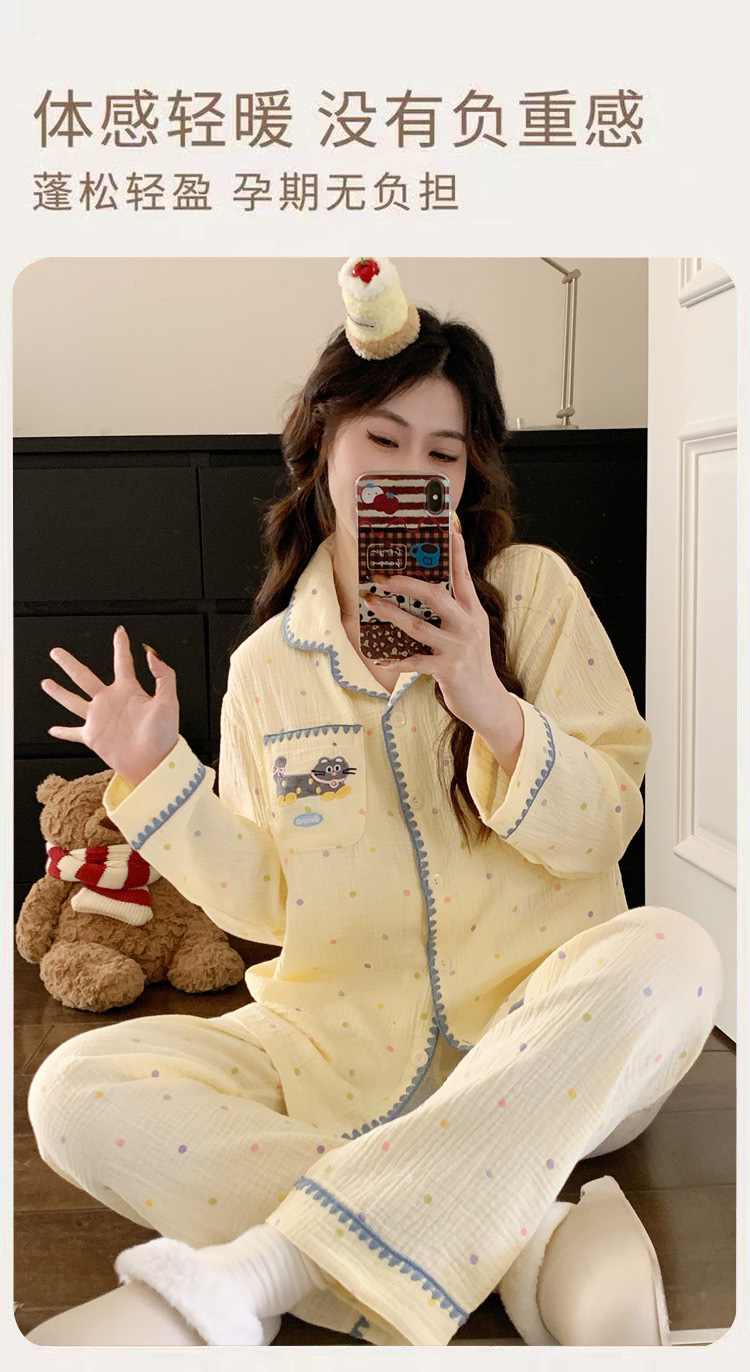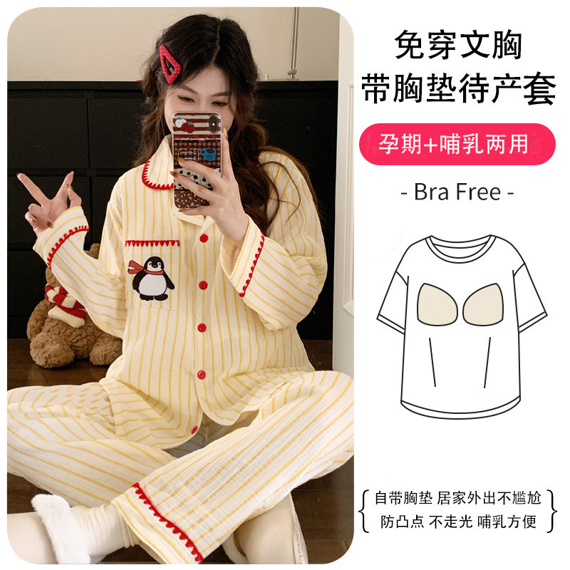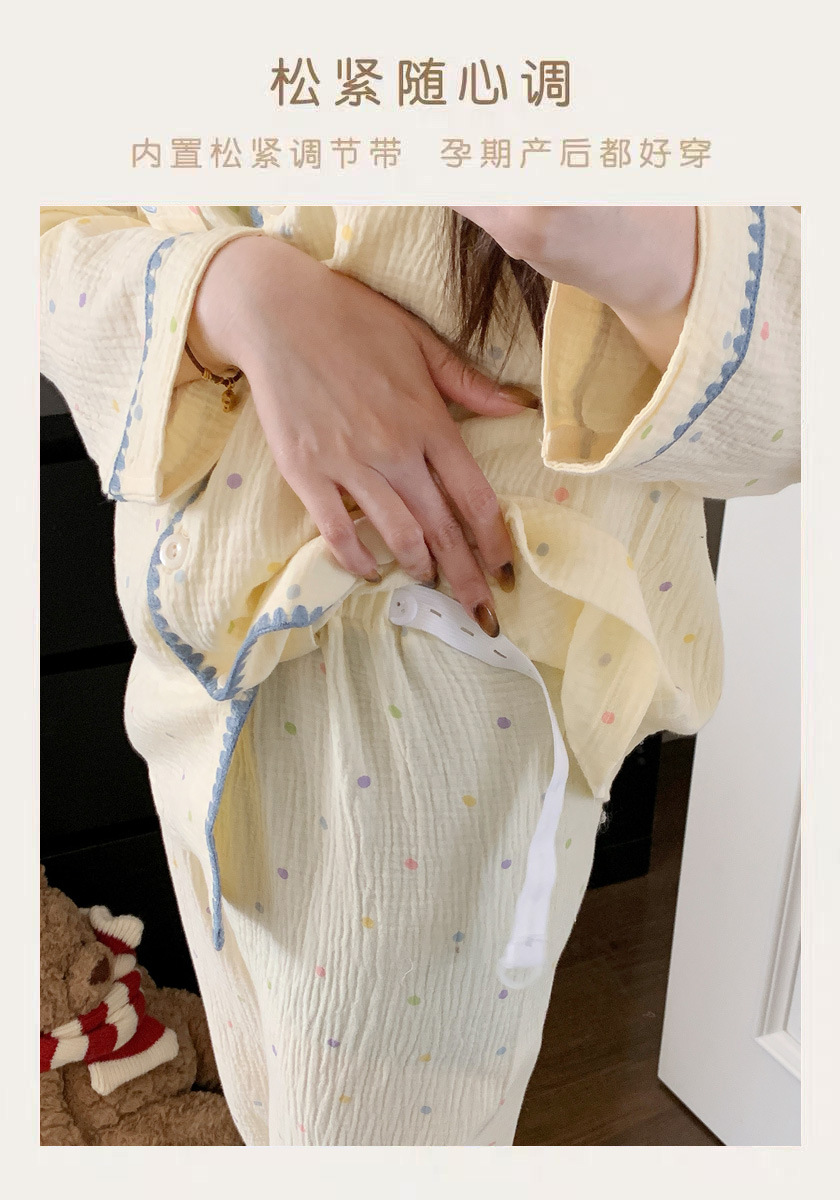 (总)洛兰沙家居馆 26年带胸垫纯棉双层纱布月子服春夏季新款孕妇哺乳长袖套装