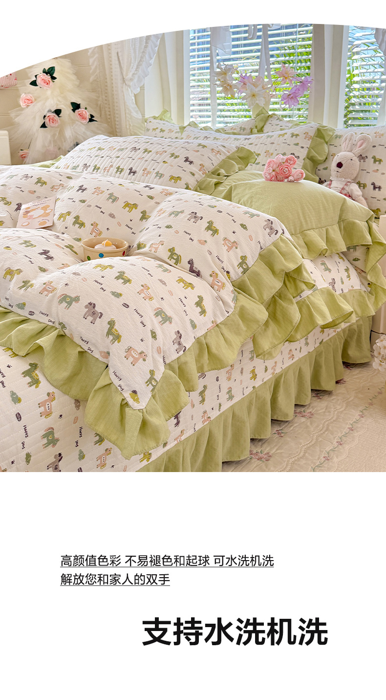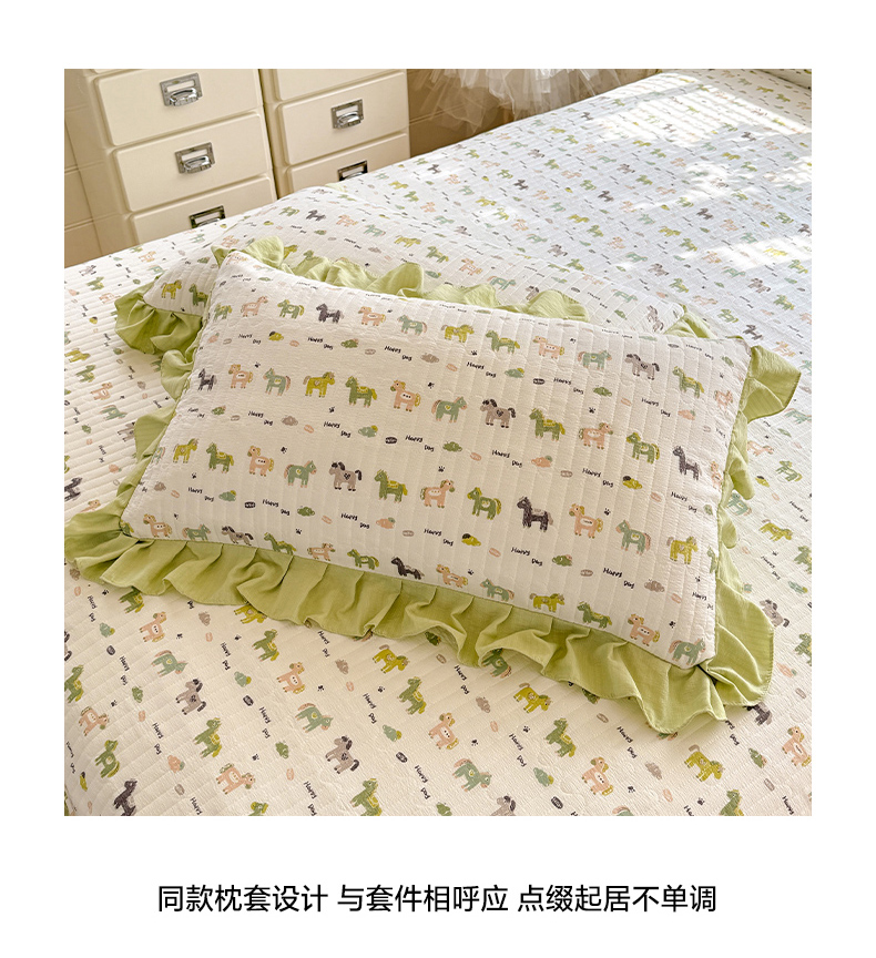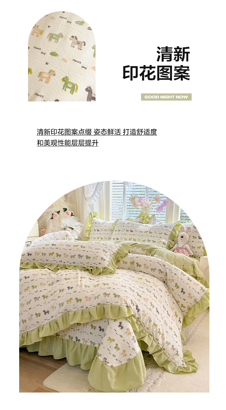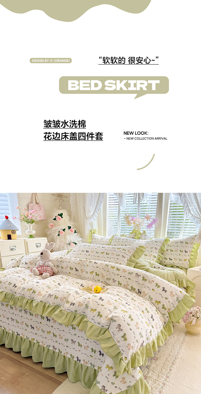 当前位置: 91家纺网 > 商品网购 > 床品套件 > 四件套 > 水洗棉四件套 > 唐人居 2026春夏新款皱皱水洗棉花边床盖四件套 幸运小马