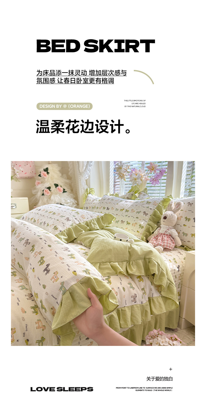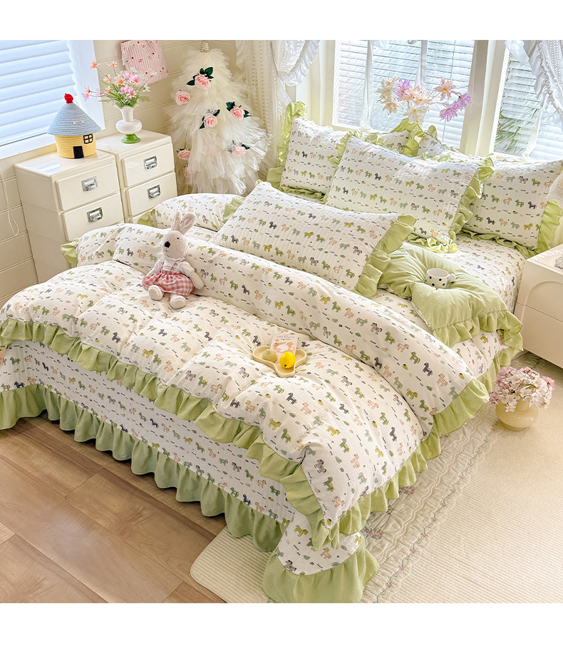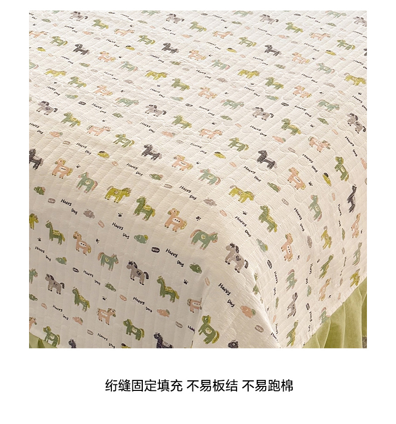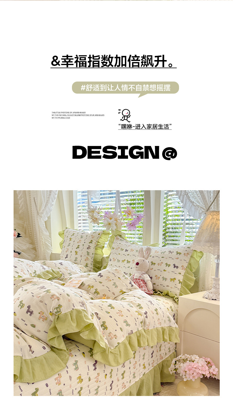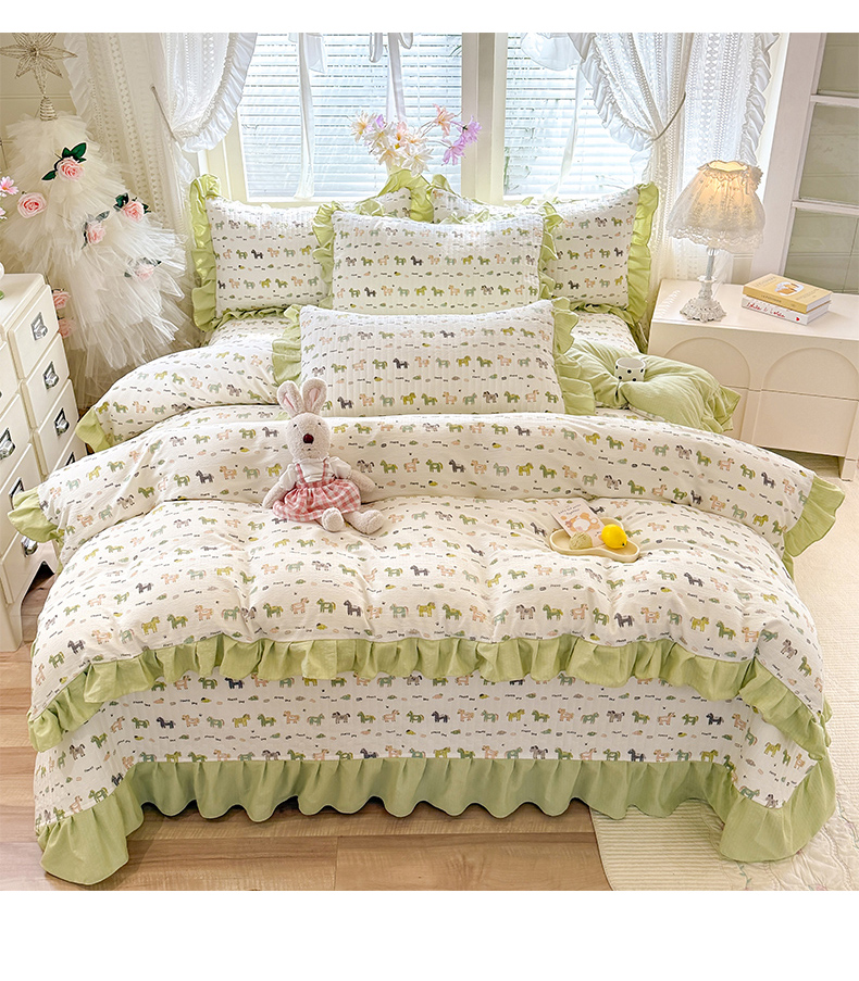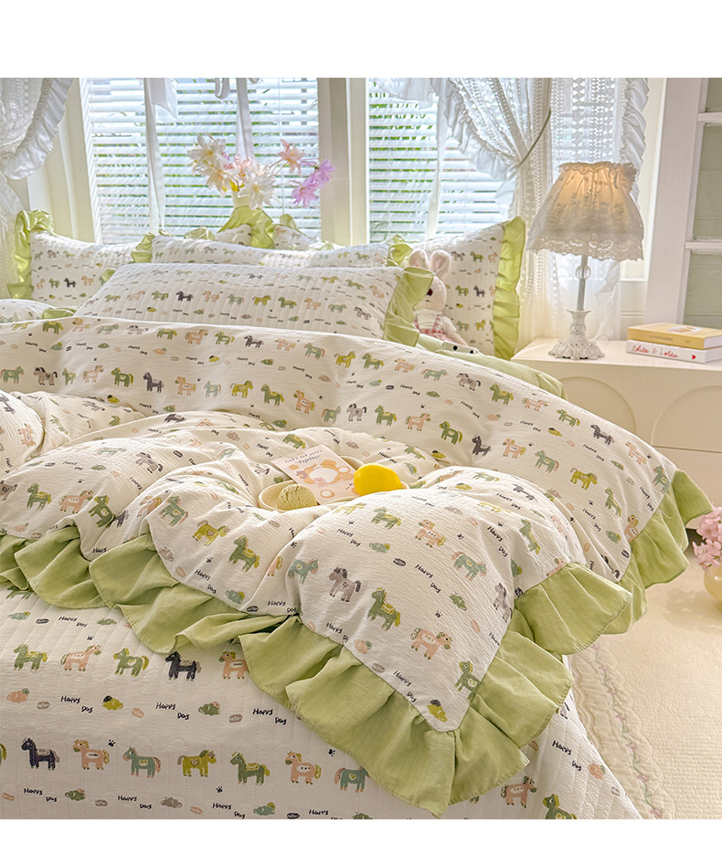 当前位置: 91家纺网 > 商品网购 > 床品套件 > 四件套 > 水洗棉四件套 > 唐人居 2026春夏新款皱皱水洗棉花边床盖四件套 幸运小马